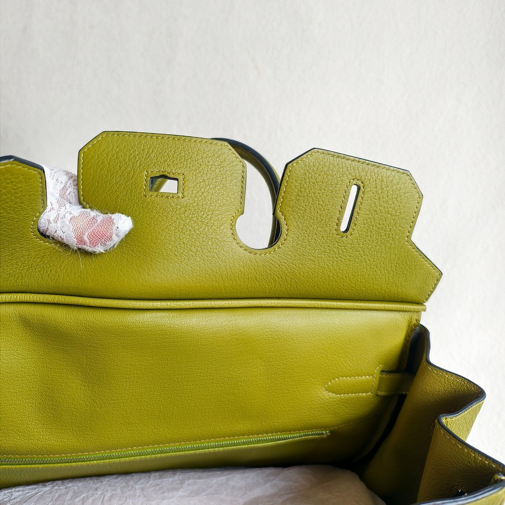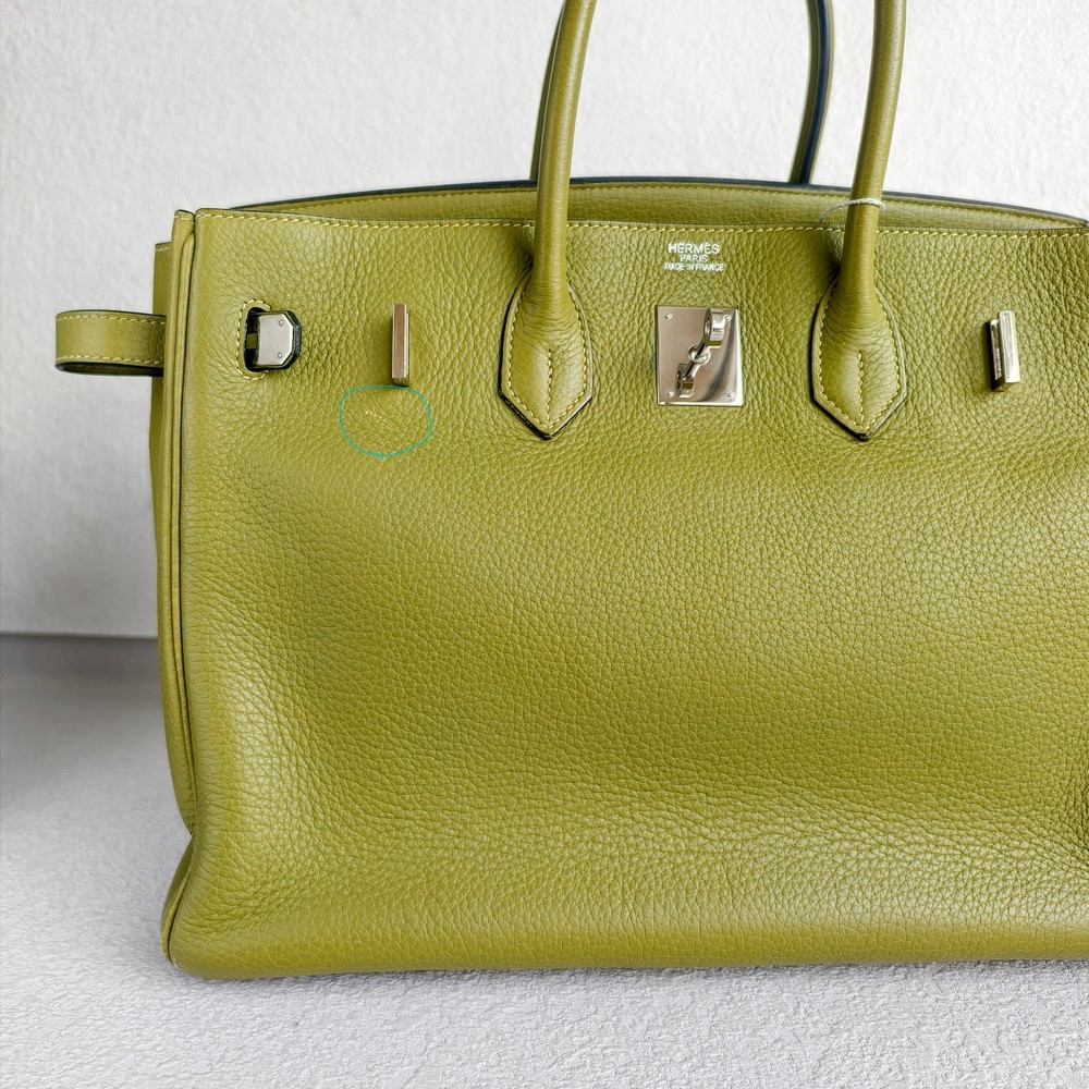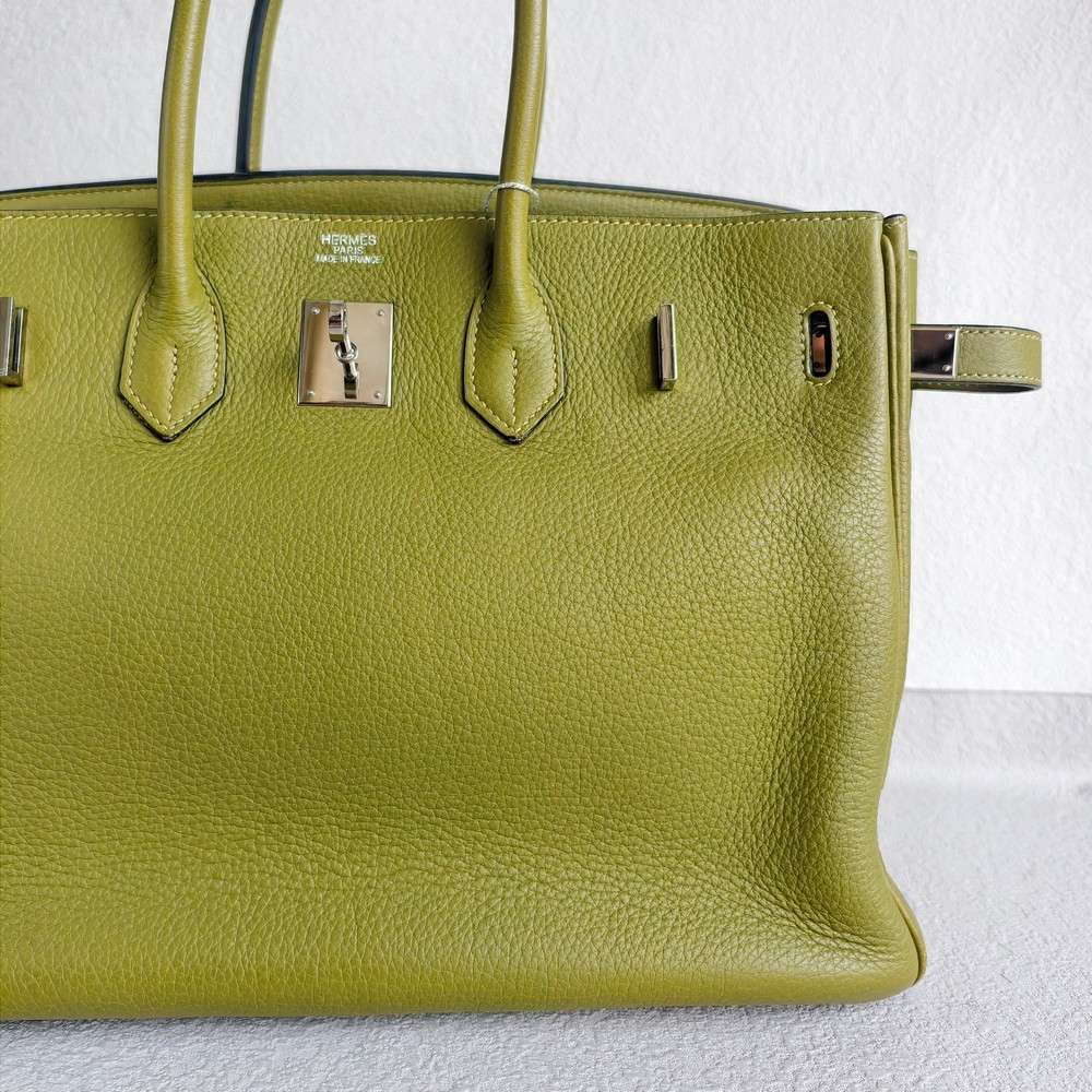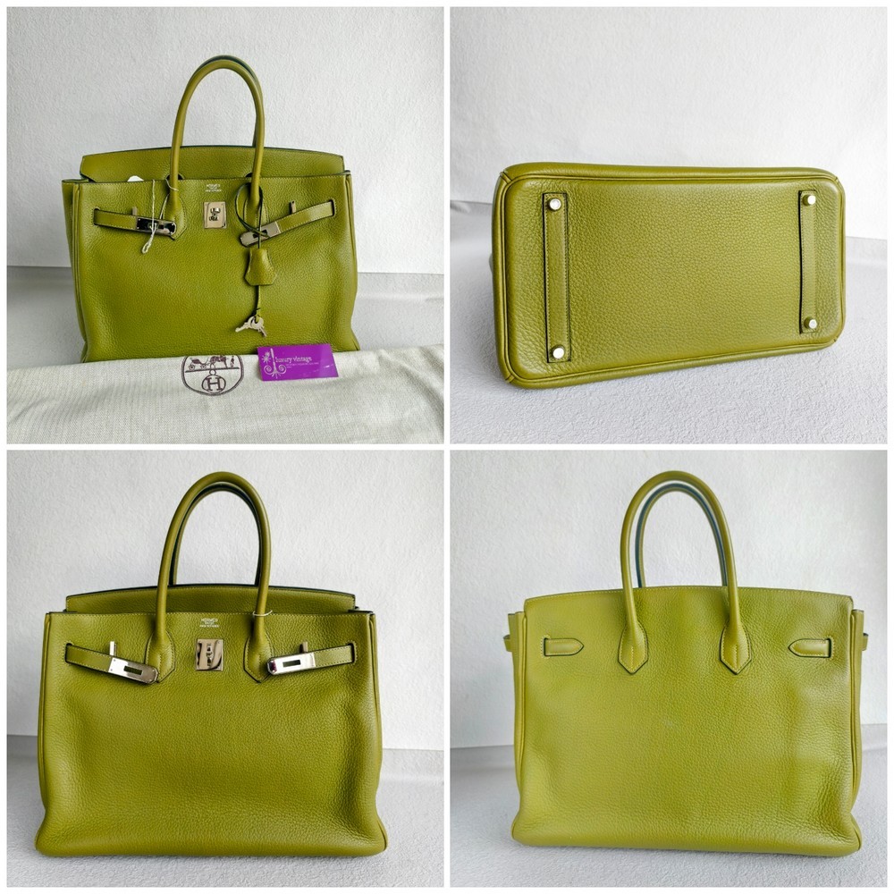 Hermes Birkin 35cm Green Clemence Leather with Palladium Plated Hardware #RSKT-1