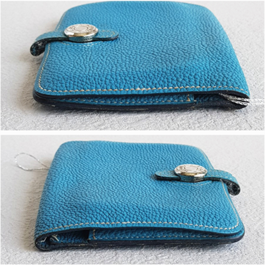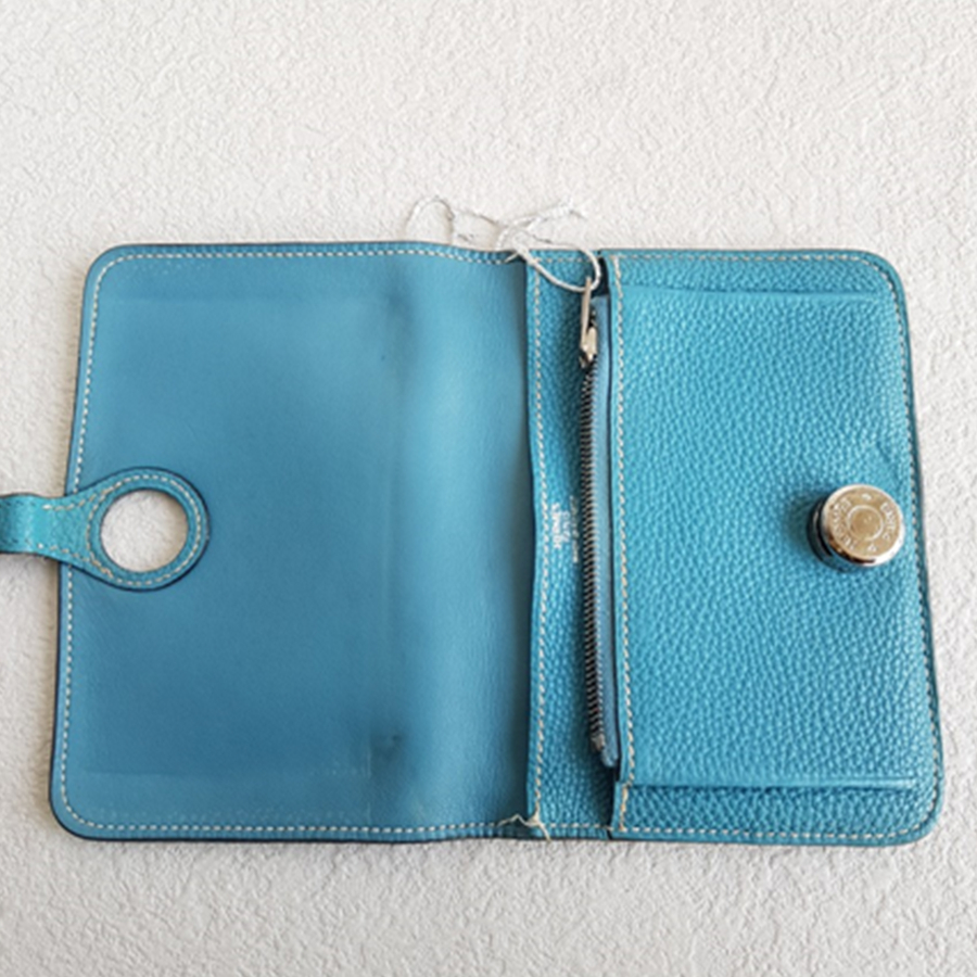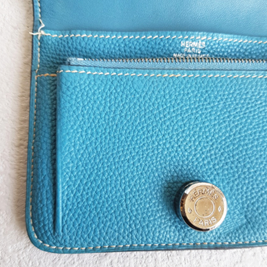 Hermes Dogon Compact Wallet Blue Jean Clemence Leather #RYLE-5