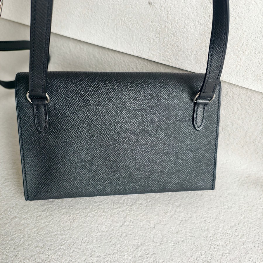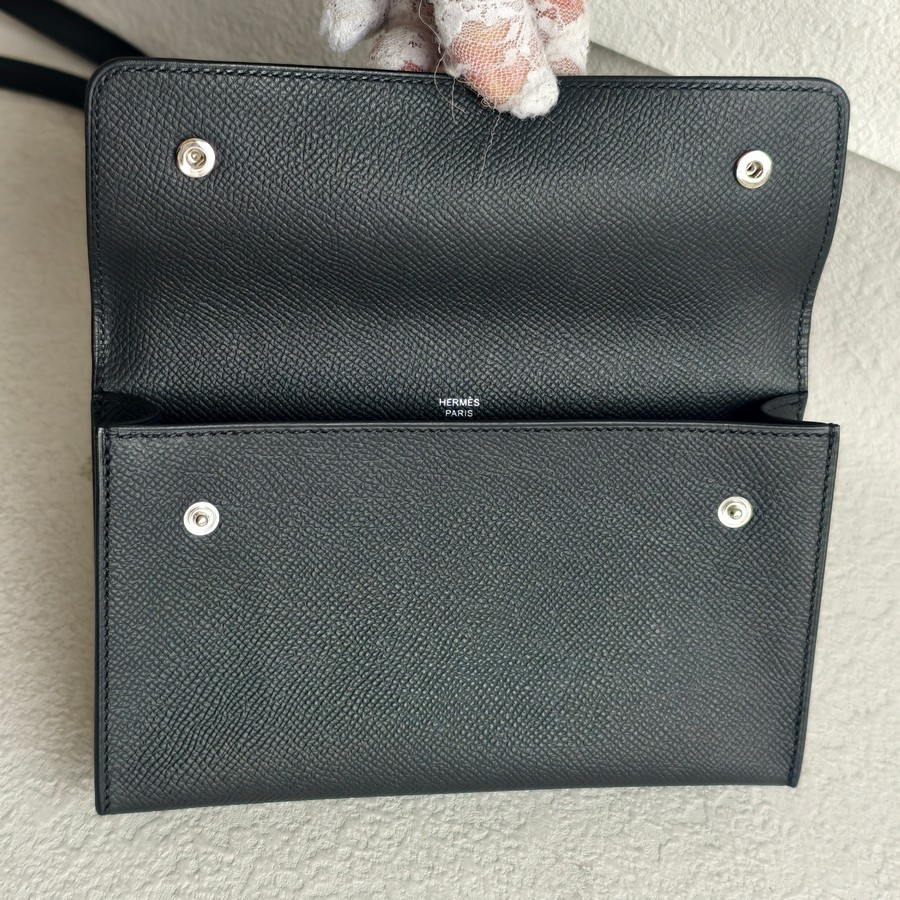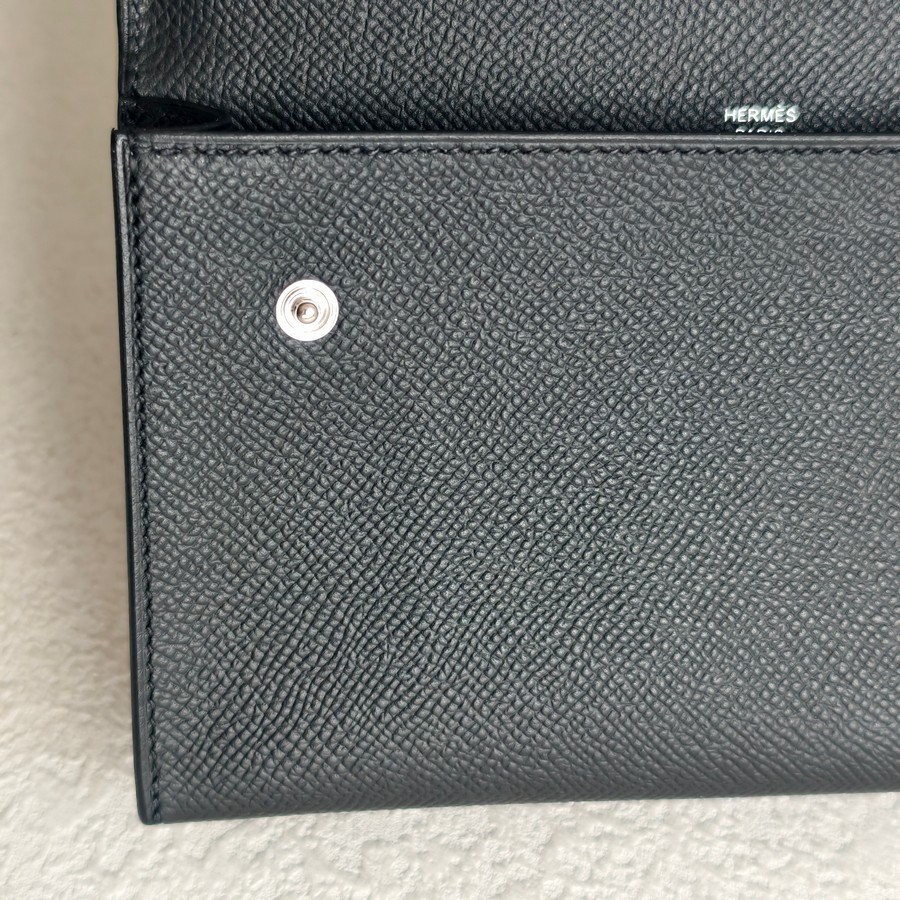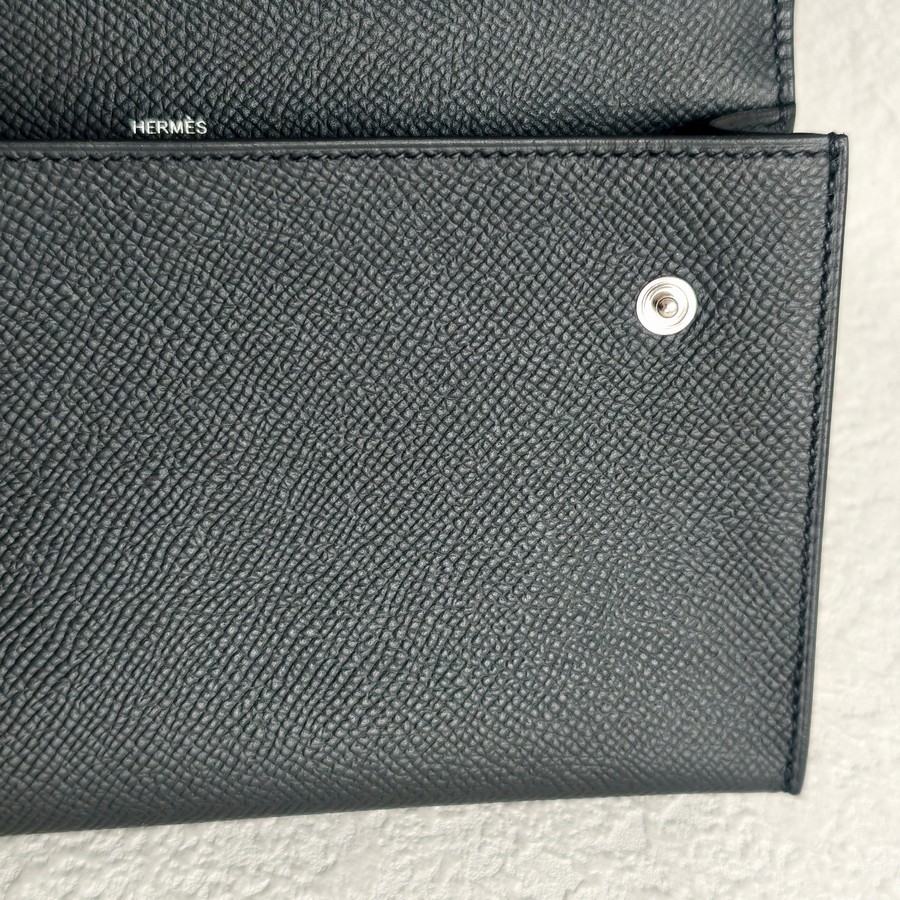 Hermes Hermèsnap Wallet Black Epsom Leather with Palladium Plated Hardware Bag #RTOK-5