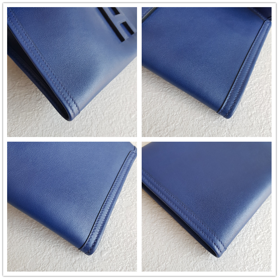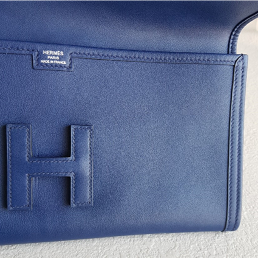 Hermes Jige Clutch Blue Sapphire Swift Leather #GULTS-4