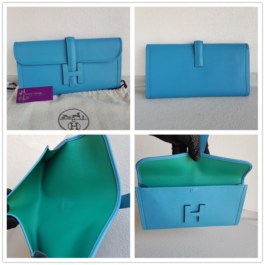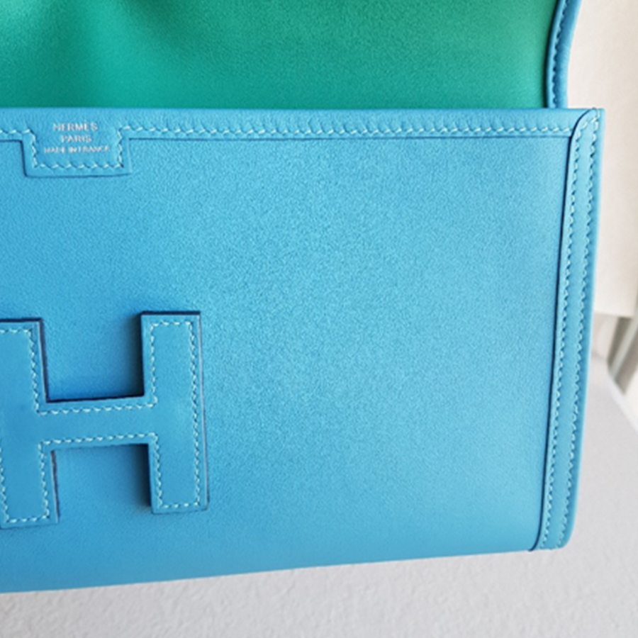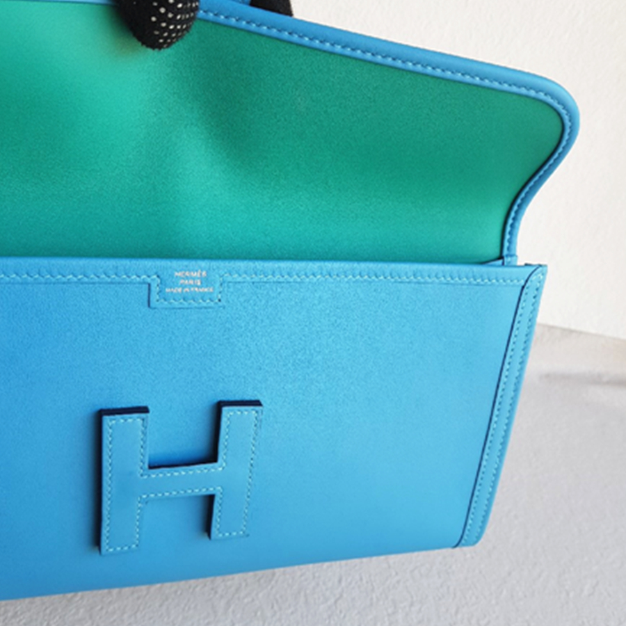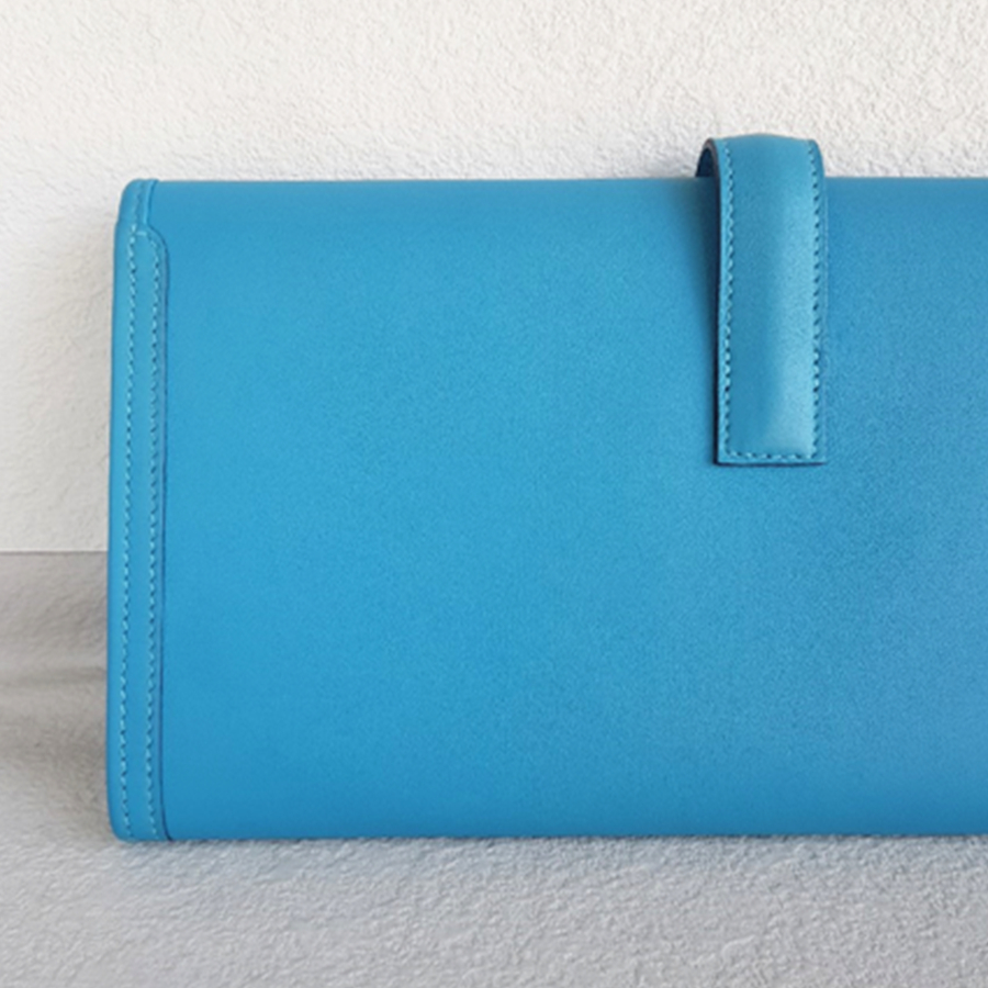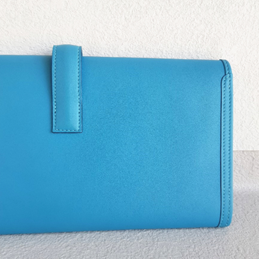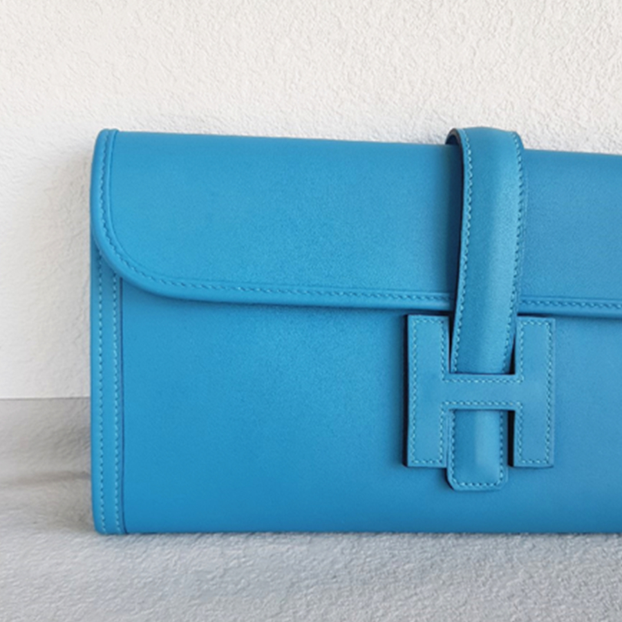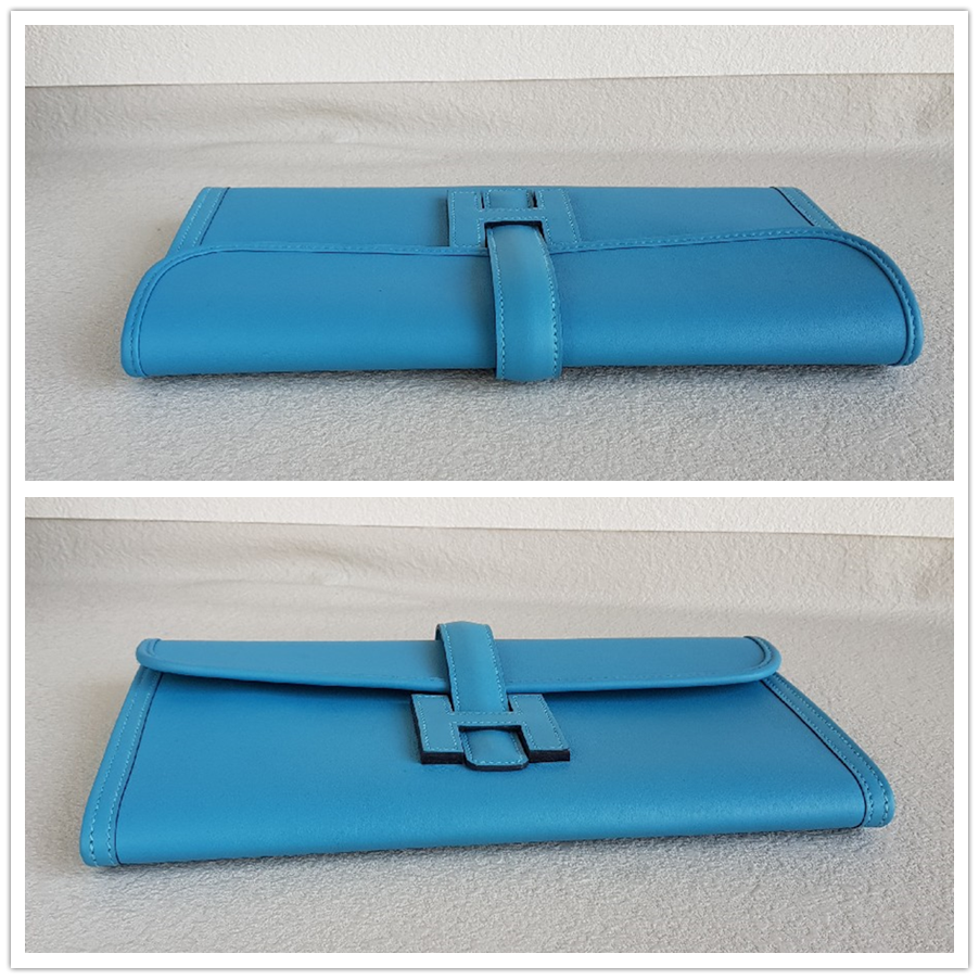 Hermes Jige Clutch Blue Swift Leather #RYLR-5