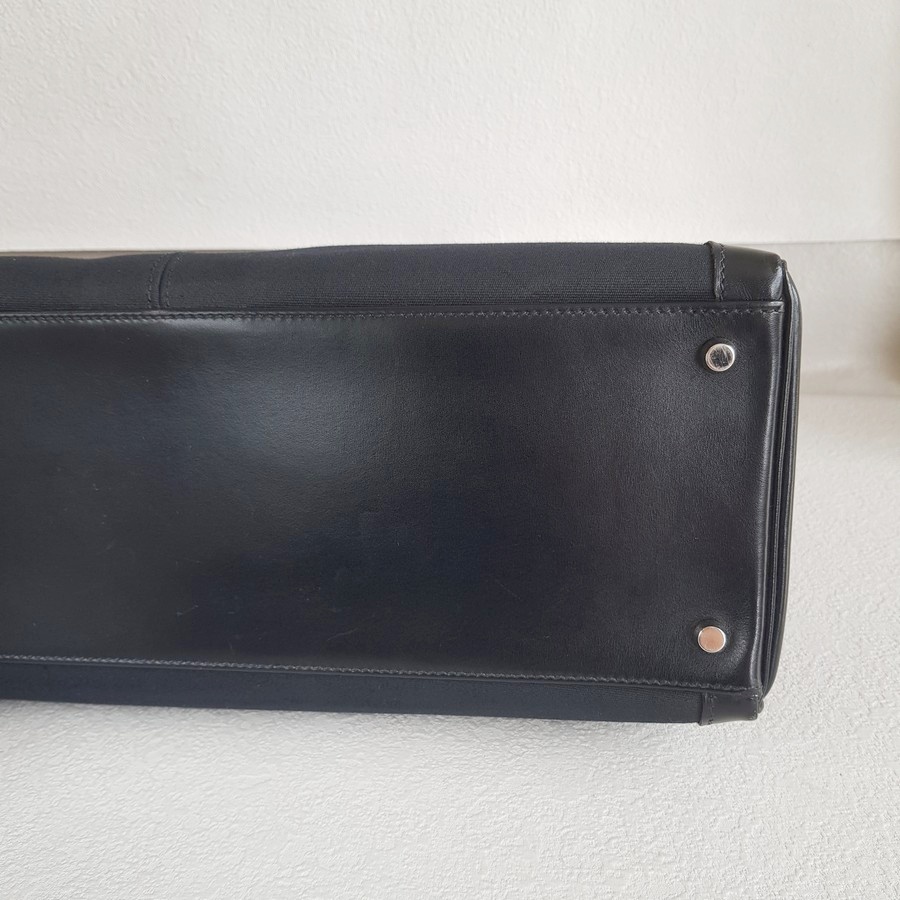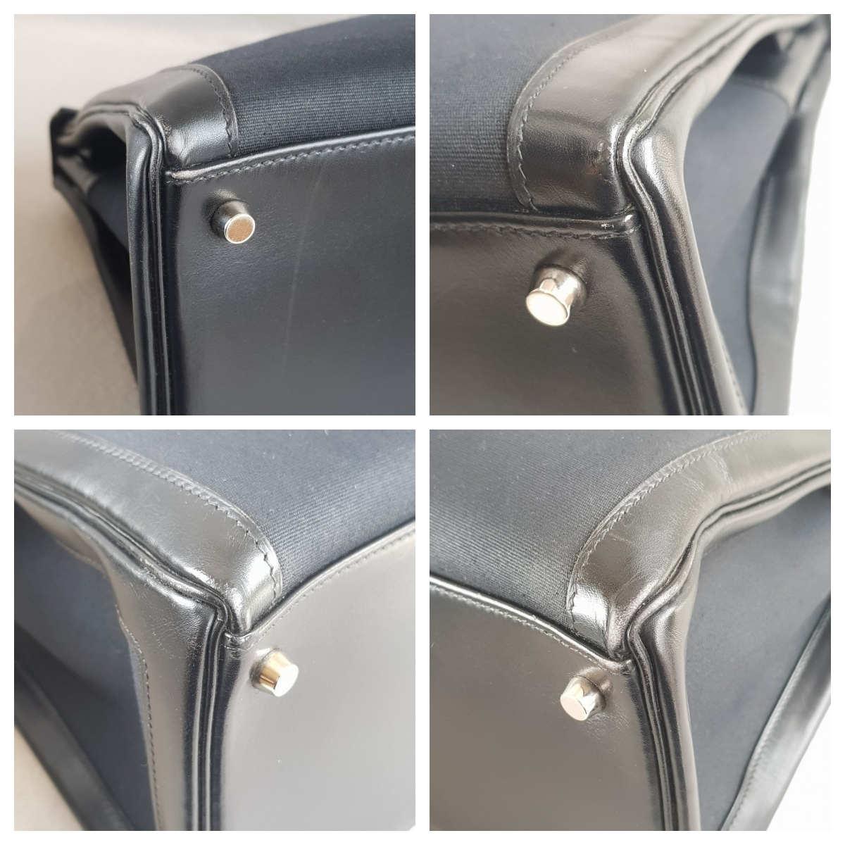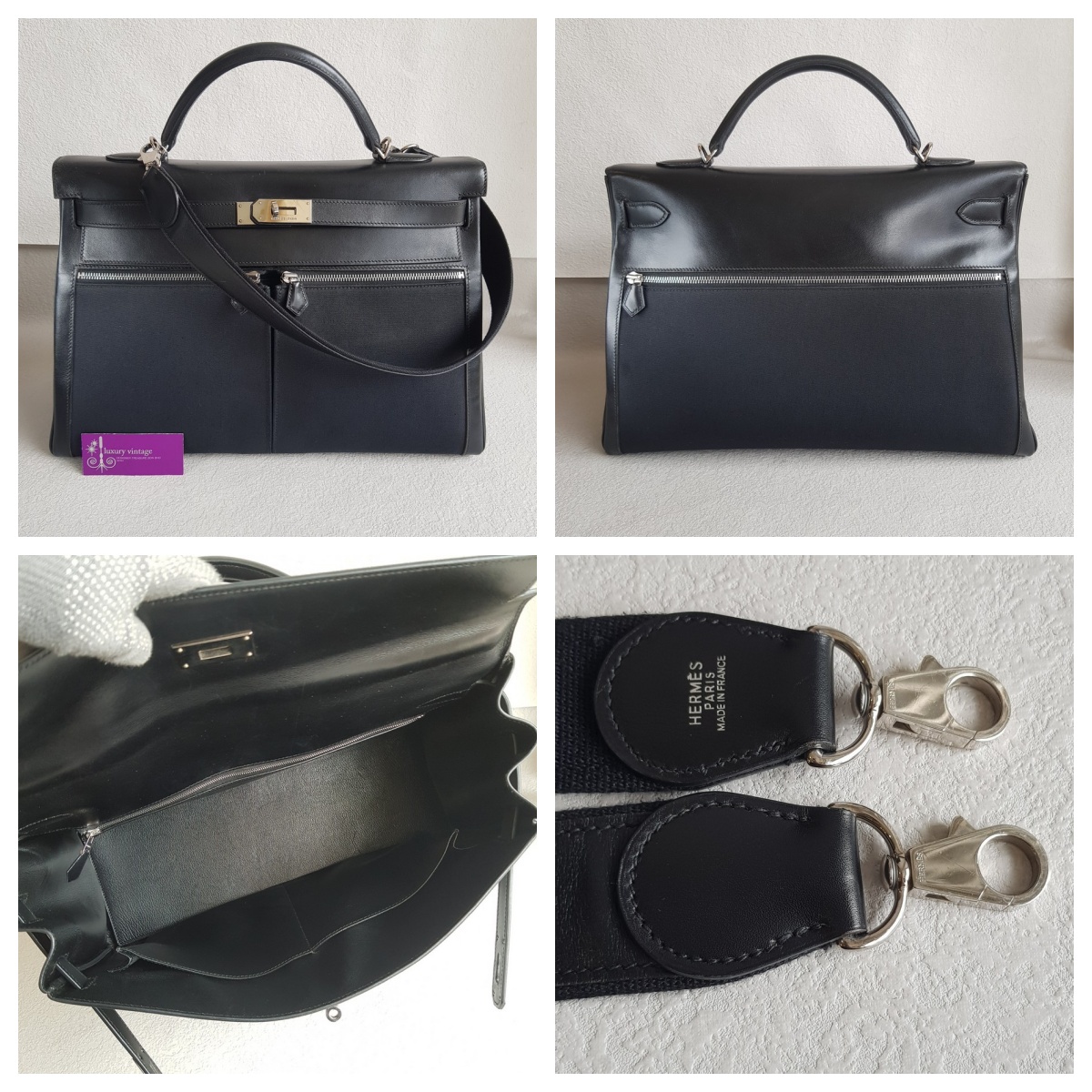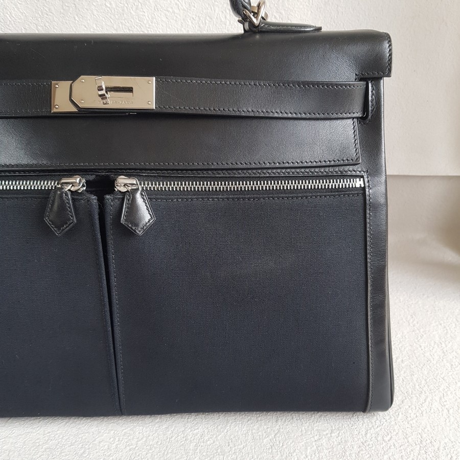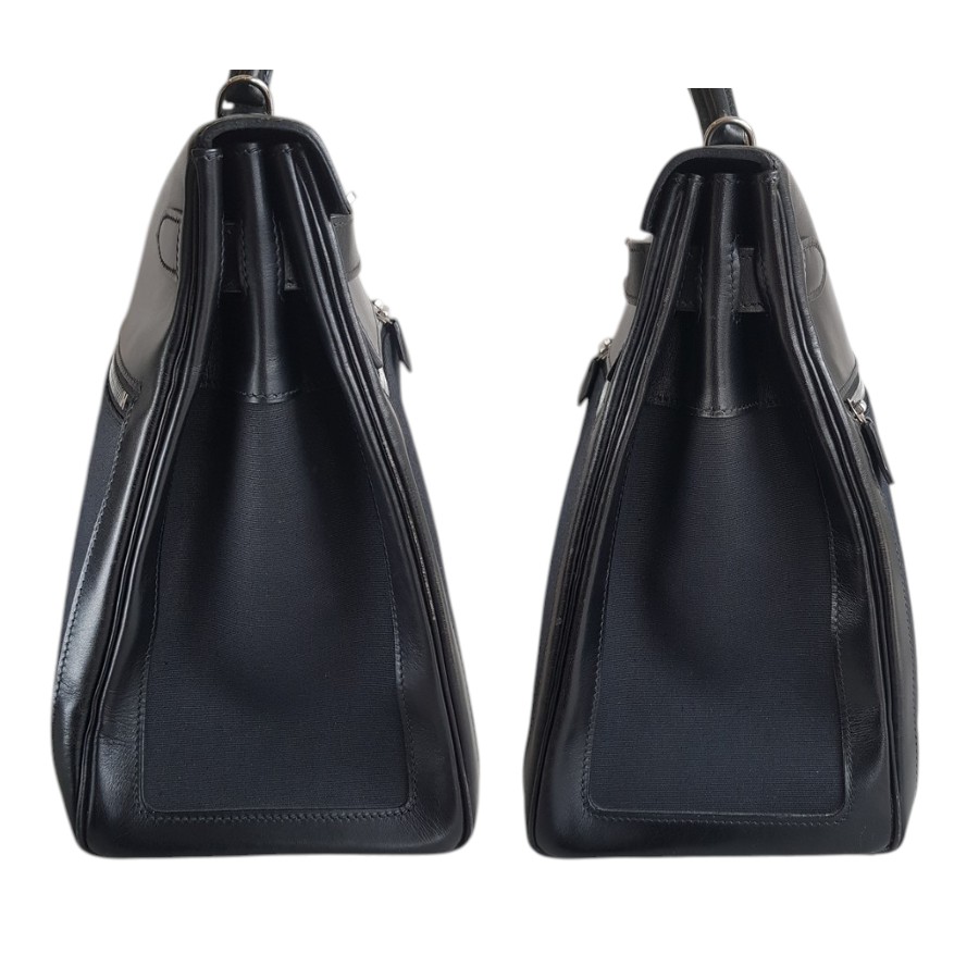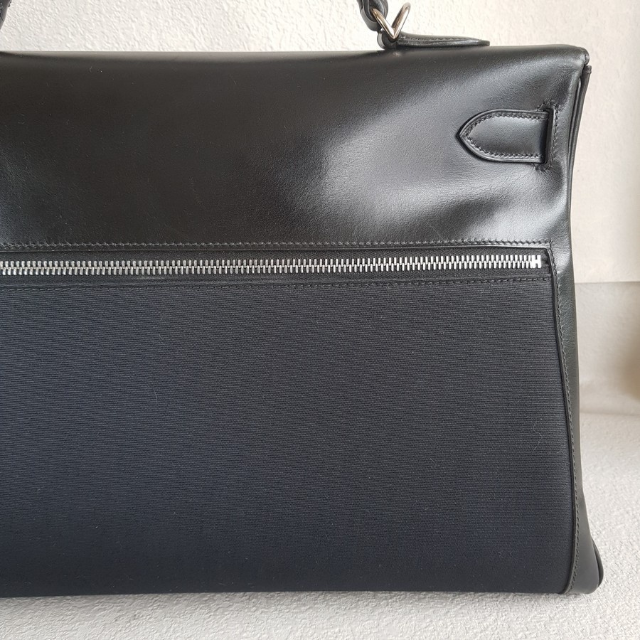 Hermes Kelly Lakis 40CM Black Box Leather With Canvas and Palladium Hardware Bag #ROKT-3