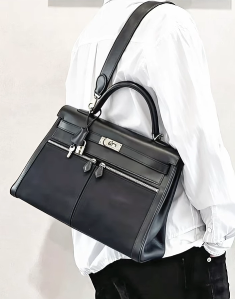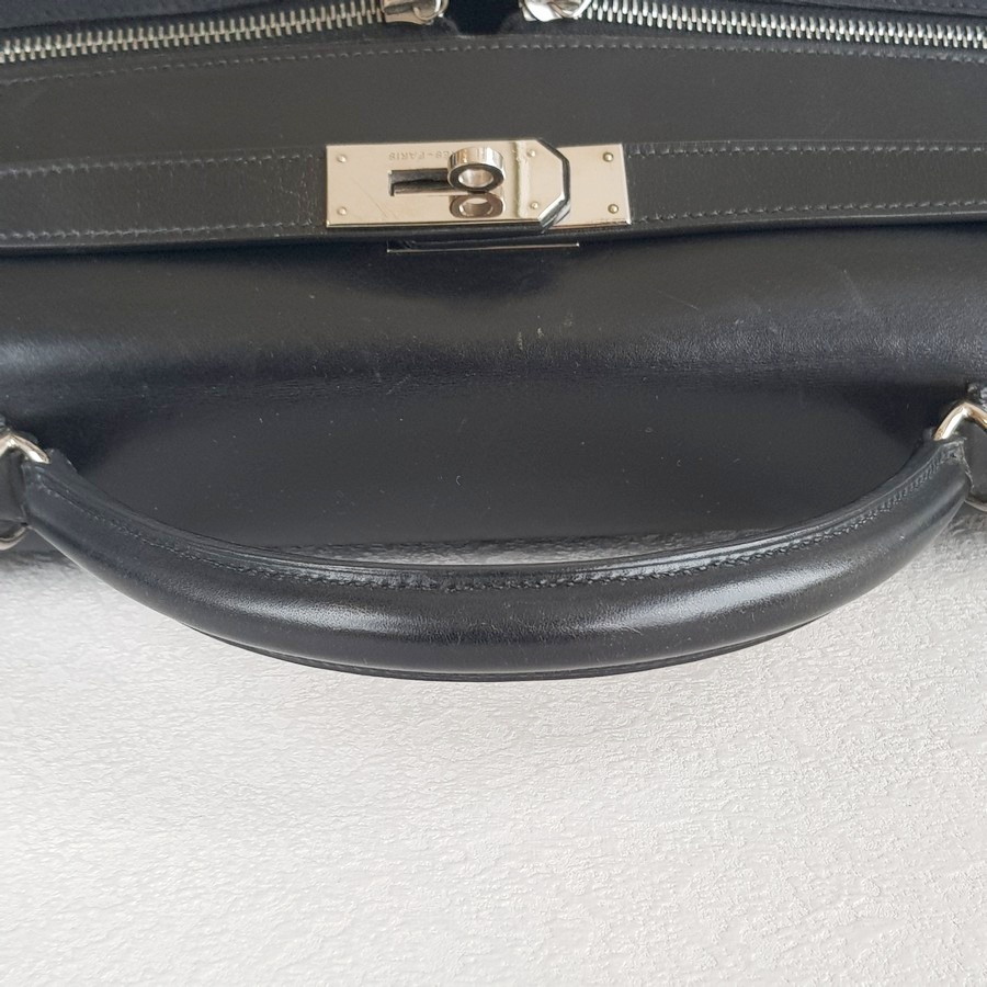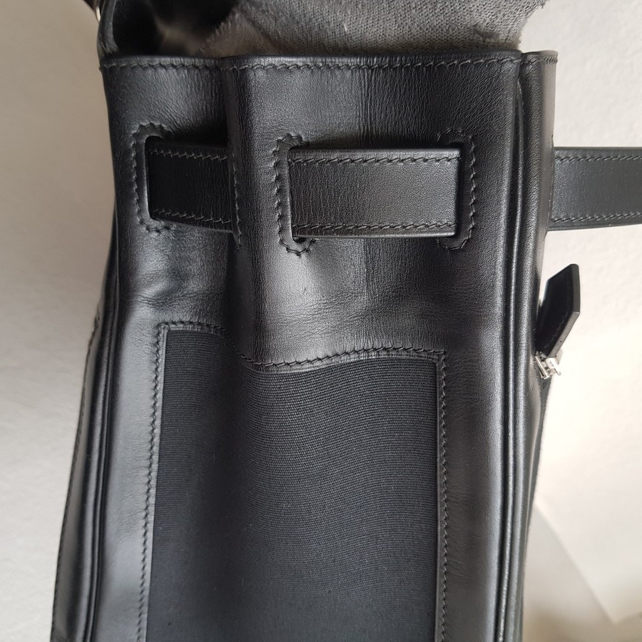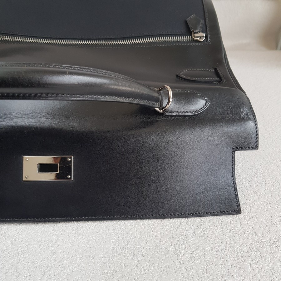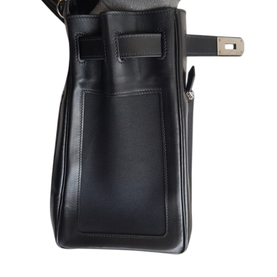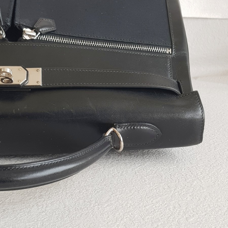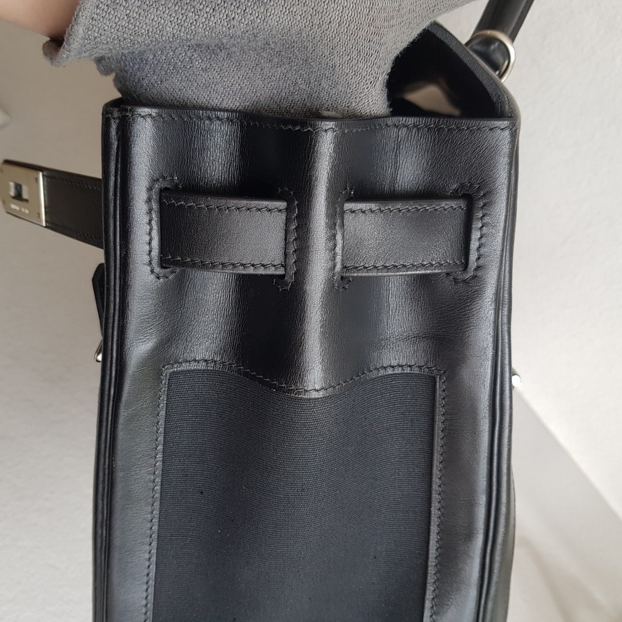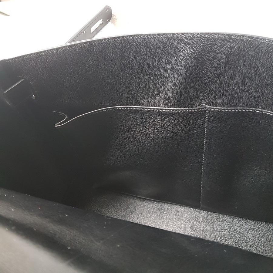 Hermes Kelly Lakis 40CM Black Box Leather With Canvas and Palladium Hardware Bag #ROKT-3