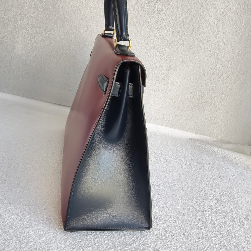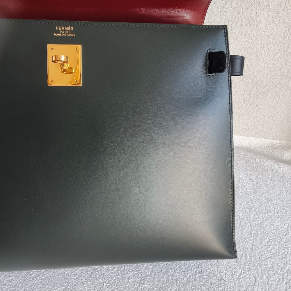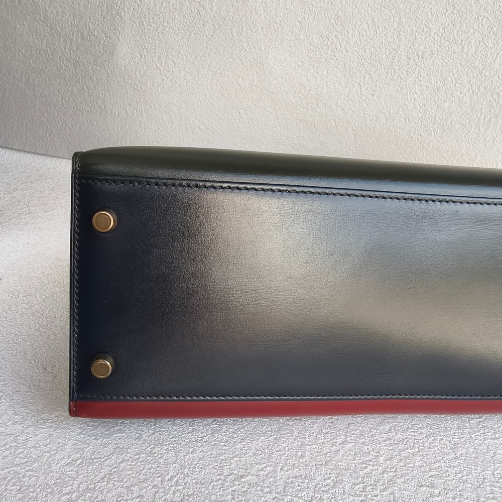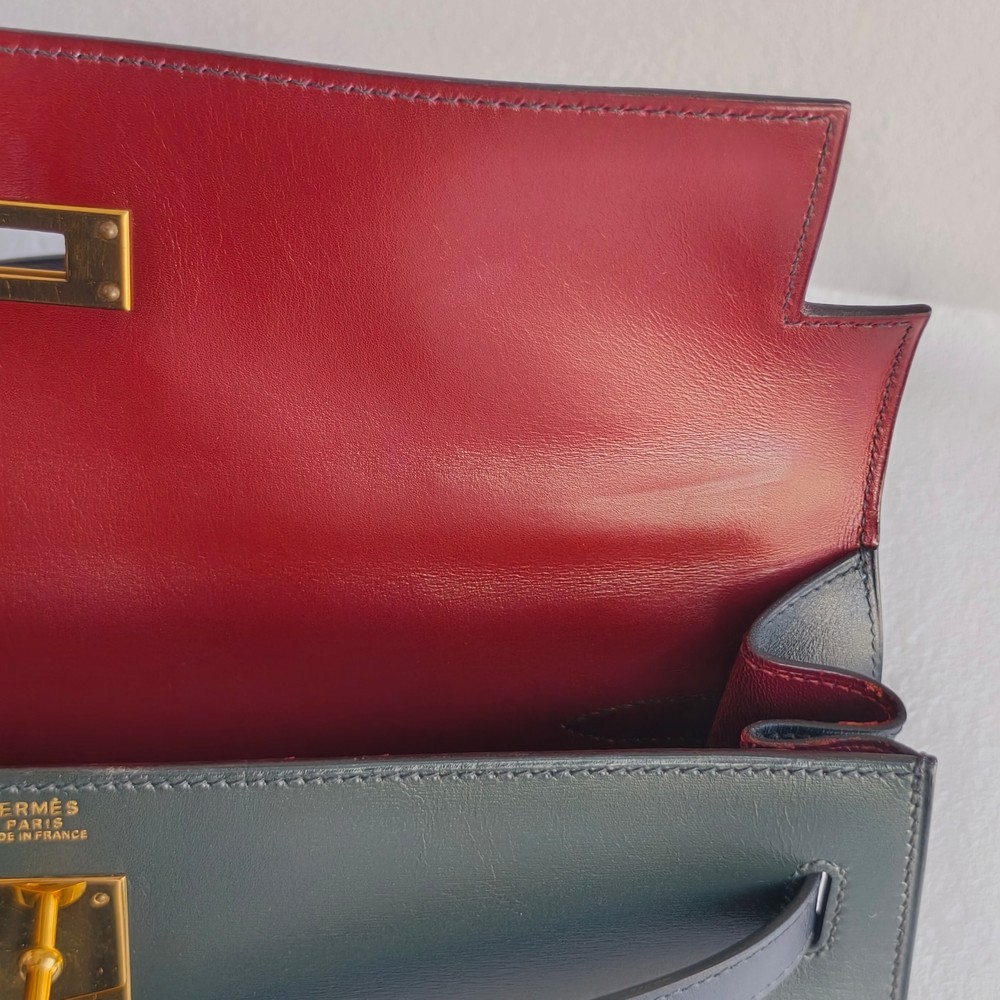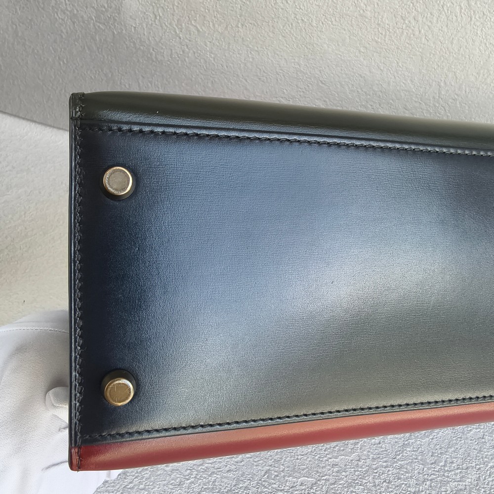 Hermes Kelly Sellier 32CM Vert Fonce/blue Indigo/rough H Box Leather With Gold Hardware Bag #ROKT-1