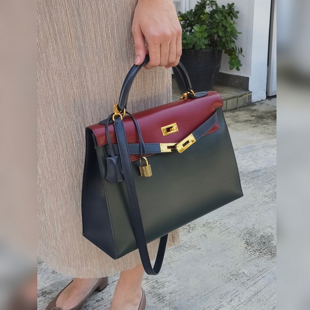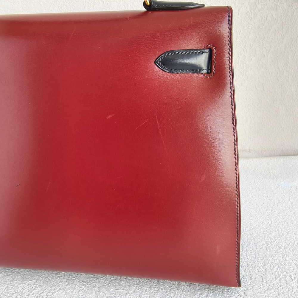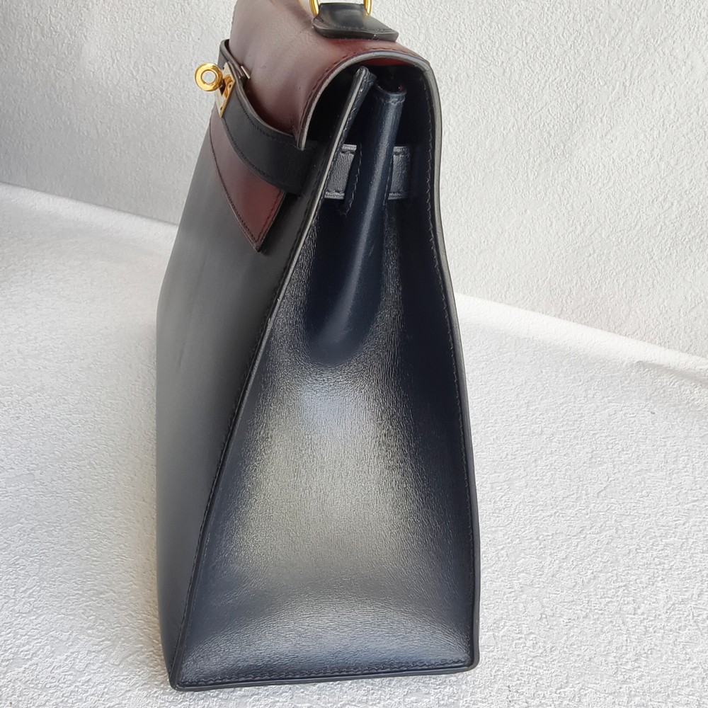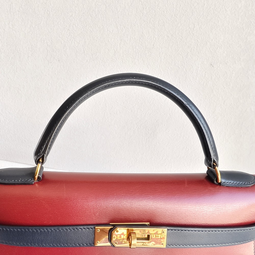 Hermes Kelly Sellier 32CM Vert Fonce/blue Indigo/rough H Box Leather With Gold Hardware Bag #ROKT-1