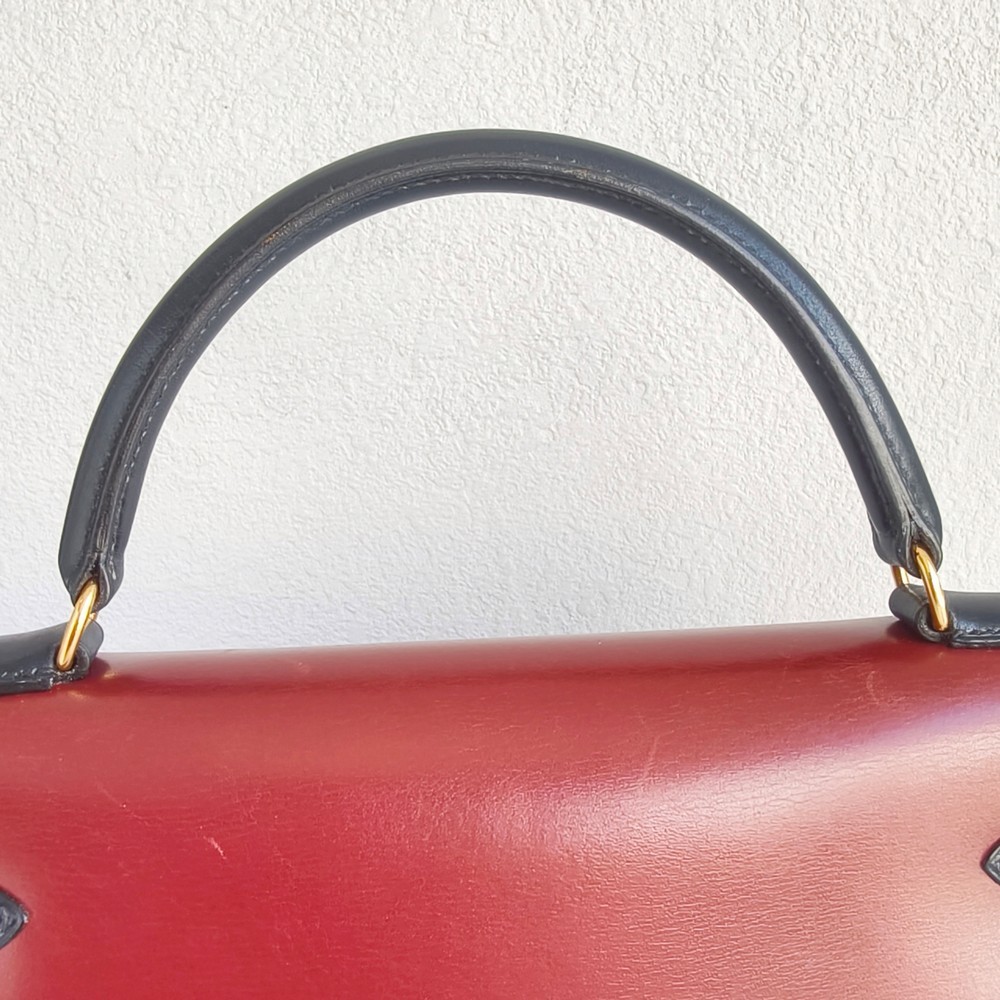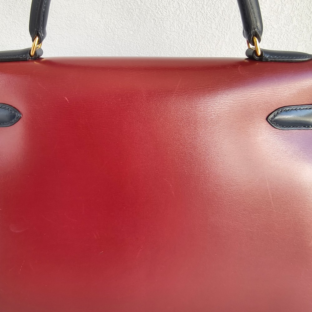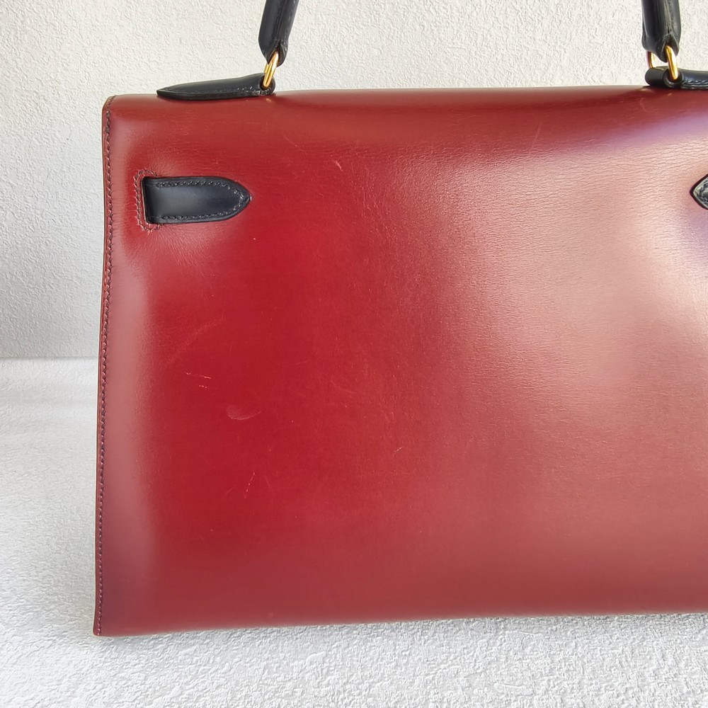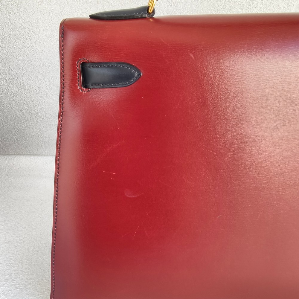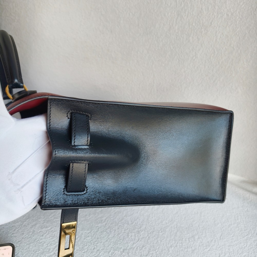 Hermes Kelly Sellier 32CM Vert Fonce/blue Indigo/rough H Box Leather With Gold Hardware Bag #ROKT-1