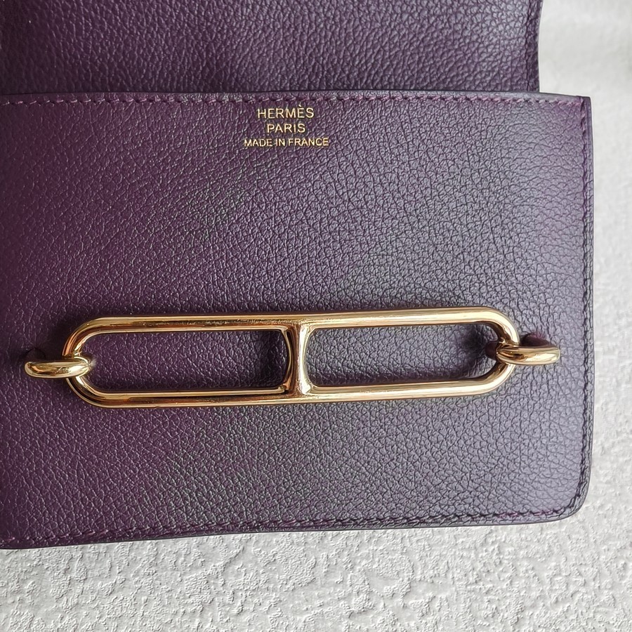 Hermes Roulis Slim Wallet /Waist Pouch Purple Swift Leather with Palladium-Plated Hardware #RTCL-4