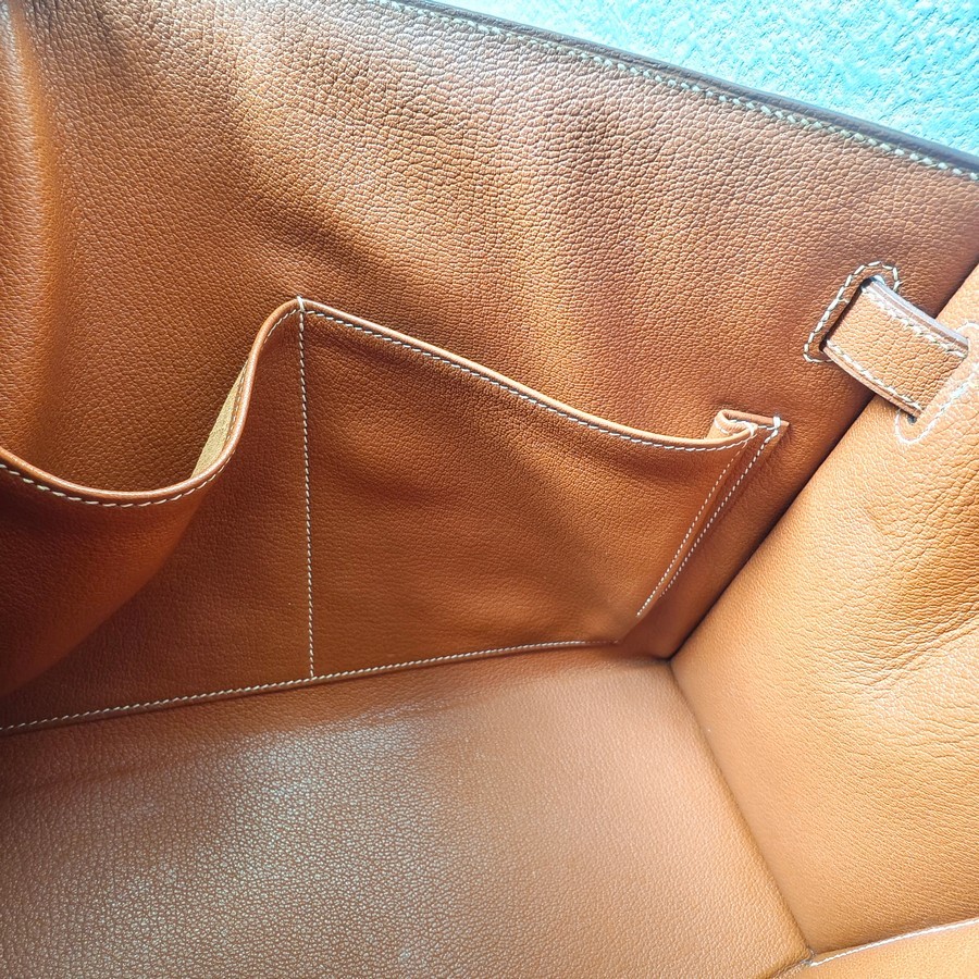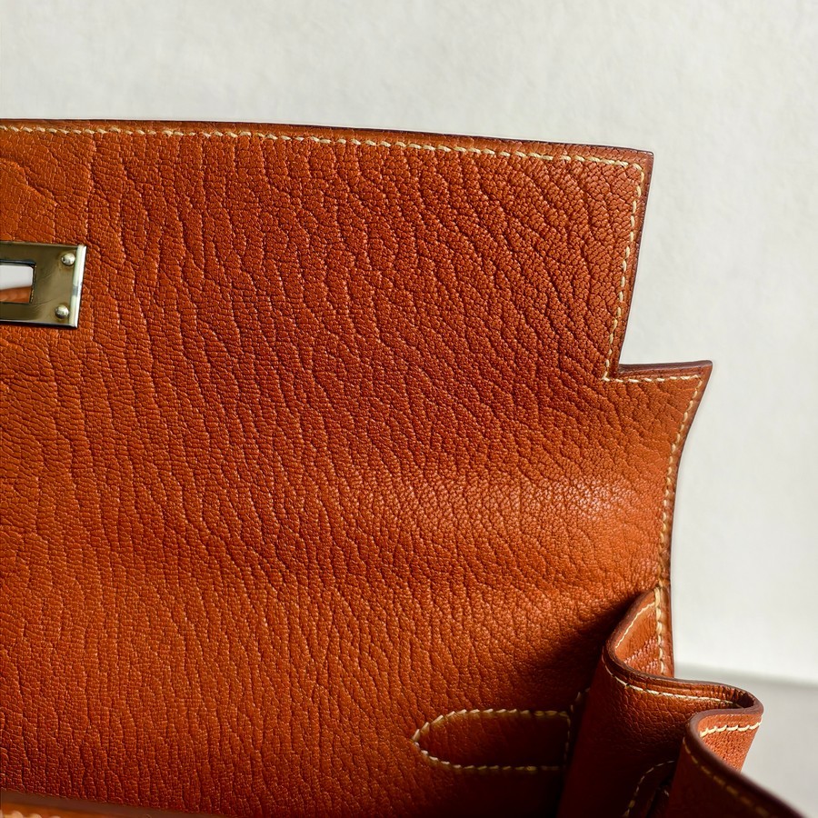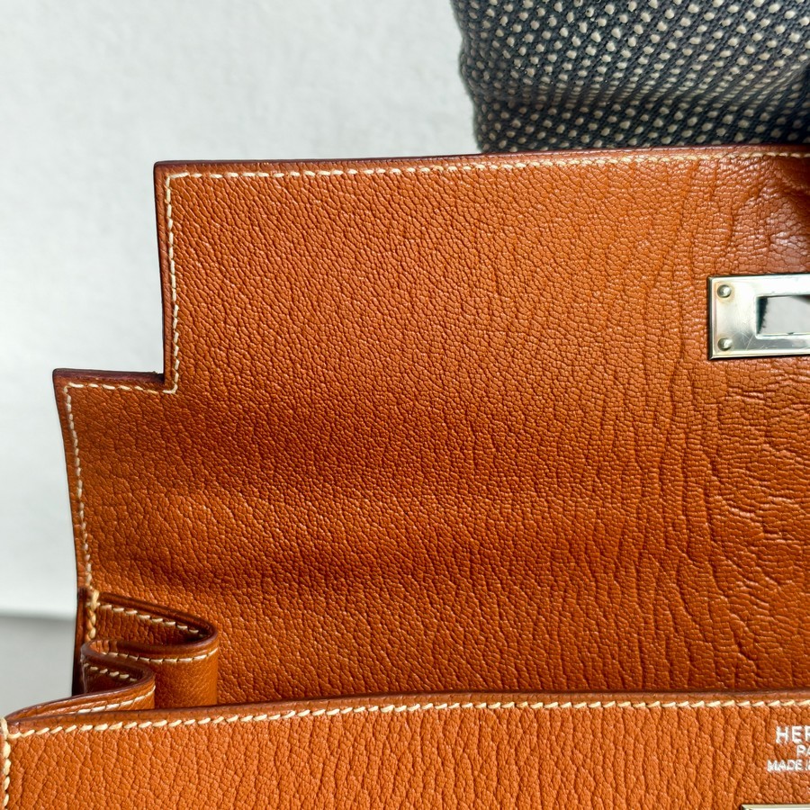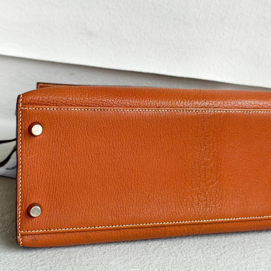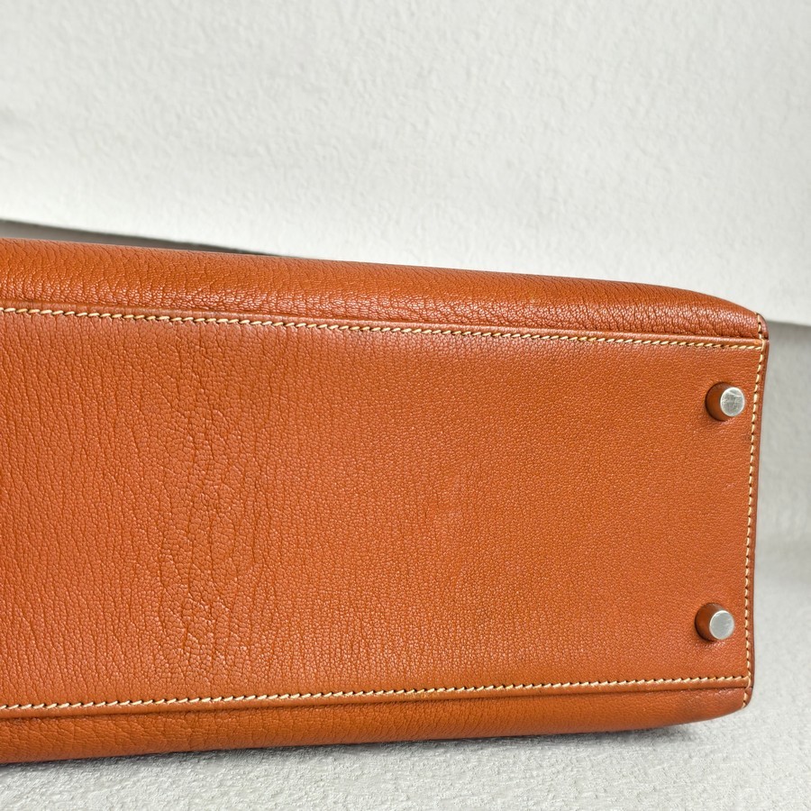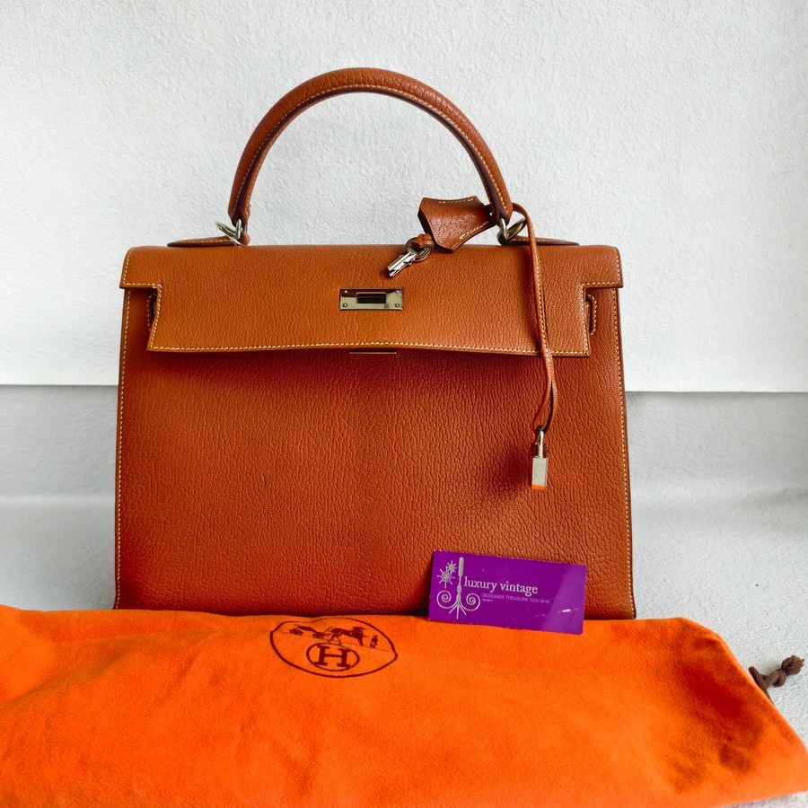 Hermes Sellier Kelly 32cm Brown-Gold Cherve Coromandel (Goatskin ) Leather With Palladium Hardware Bag #ROUY-1