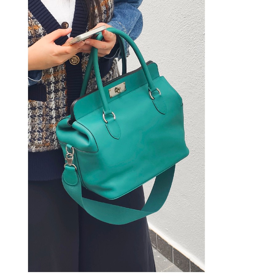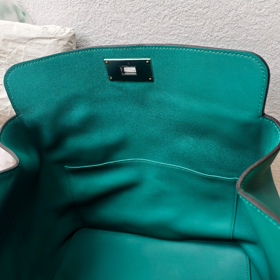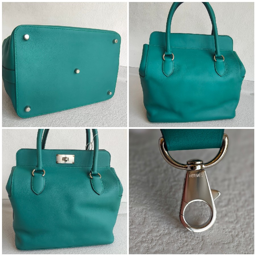 Hermes Toolbox 26cm Malachite Swift Leather with Palladium Plated Hardware #RKCL-1