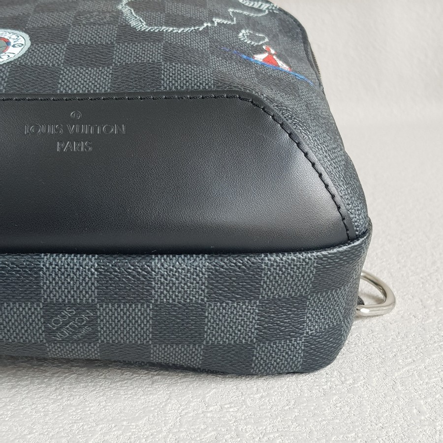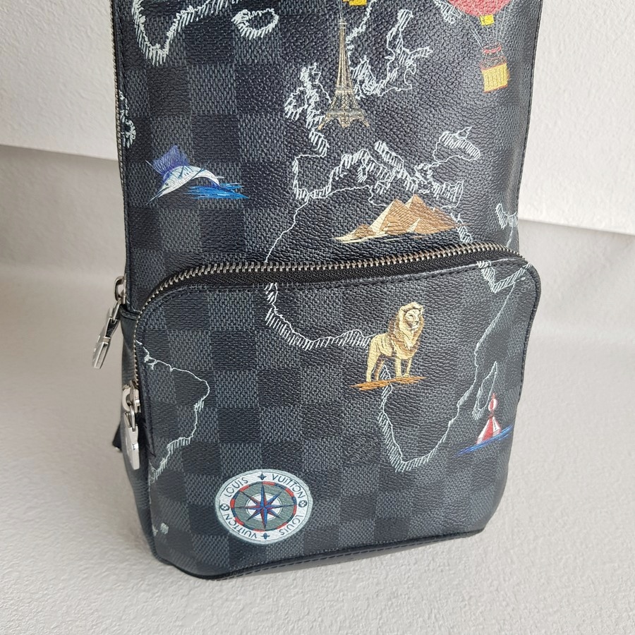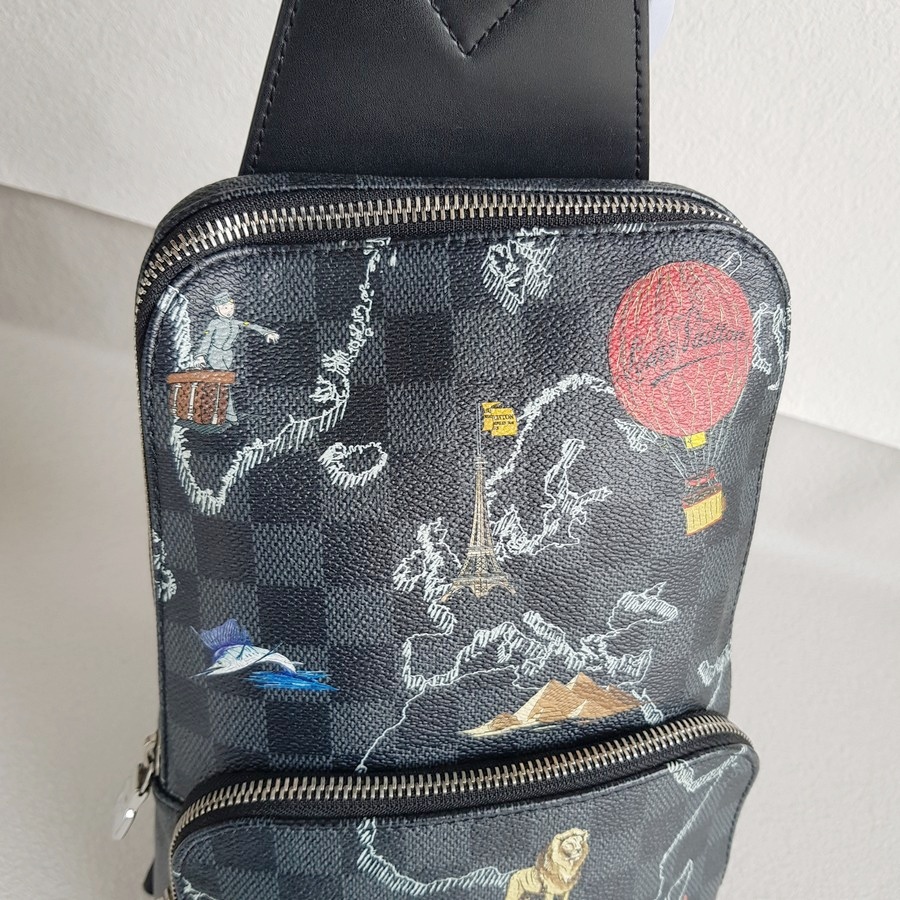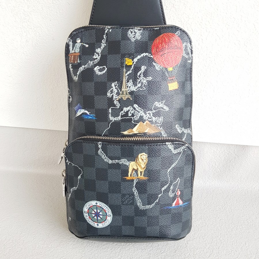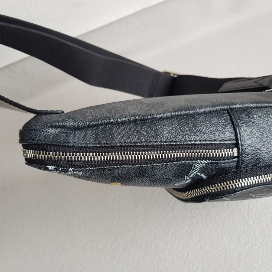 LV Avenue World Map Bumbag Black/Grey Damier Graphite Coated Canvas/Leather and Silver Hardware #RTET-1