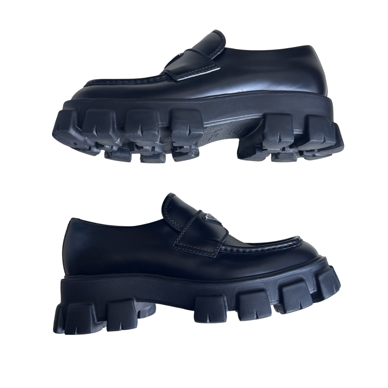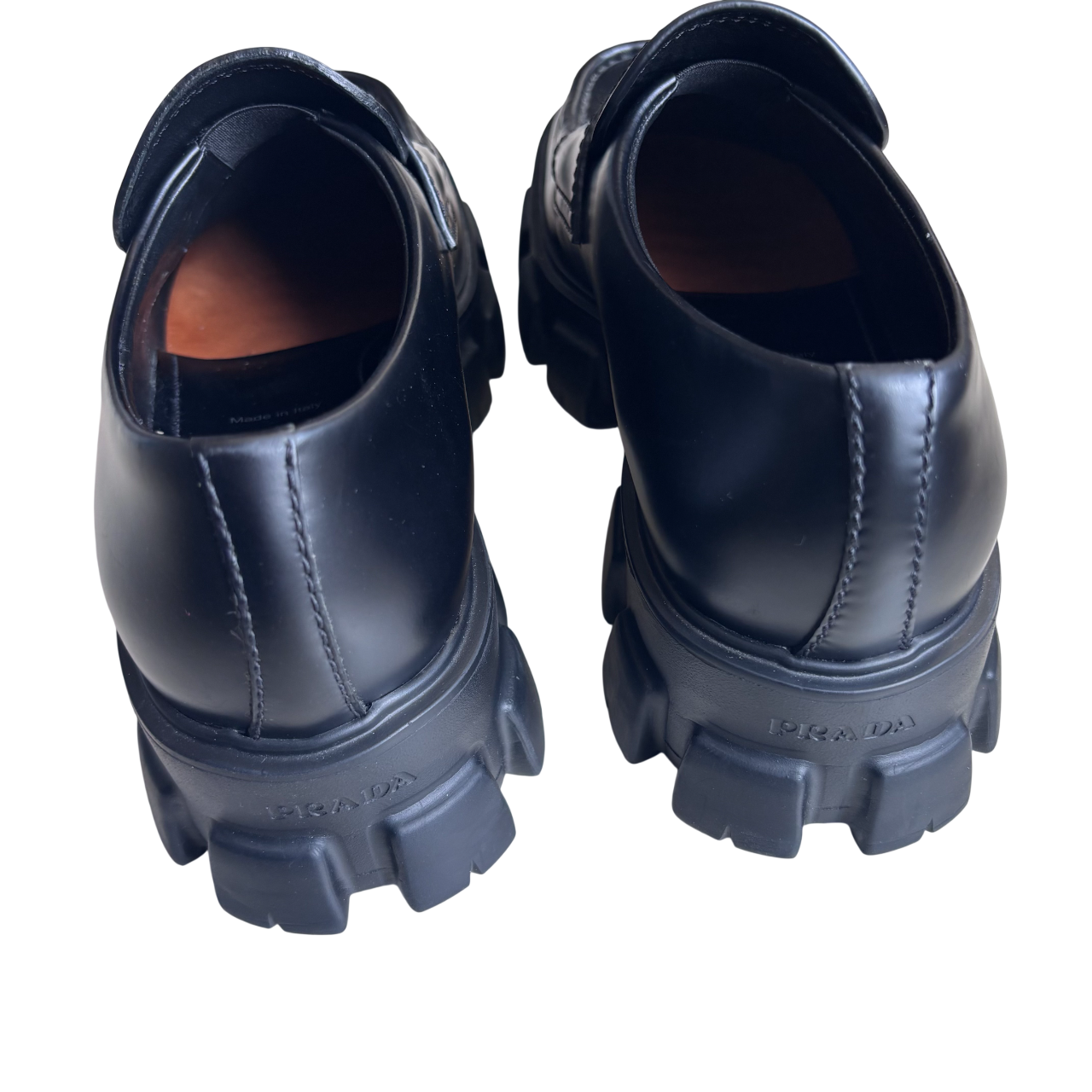 Prada Loafer Size 8 Black Leather Shoes #RSLY-19