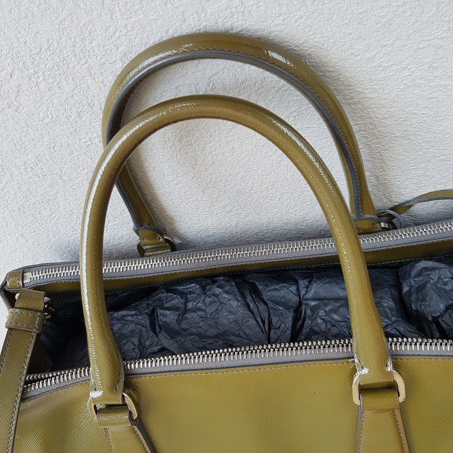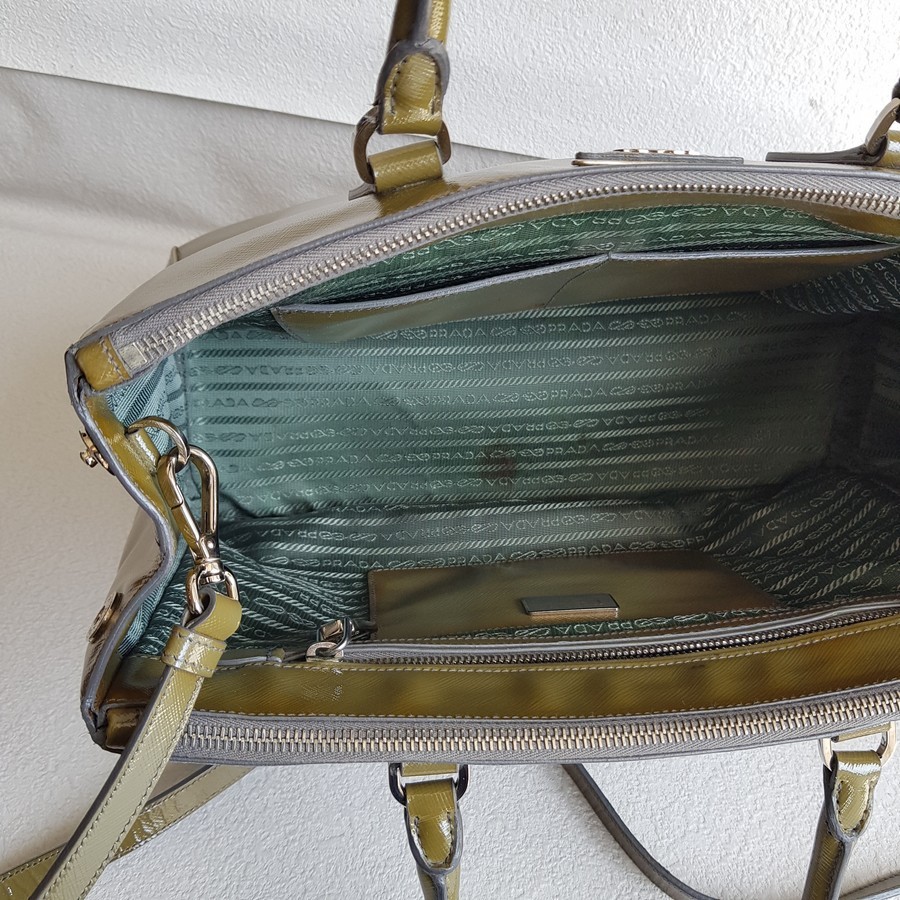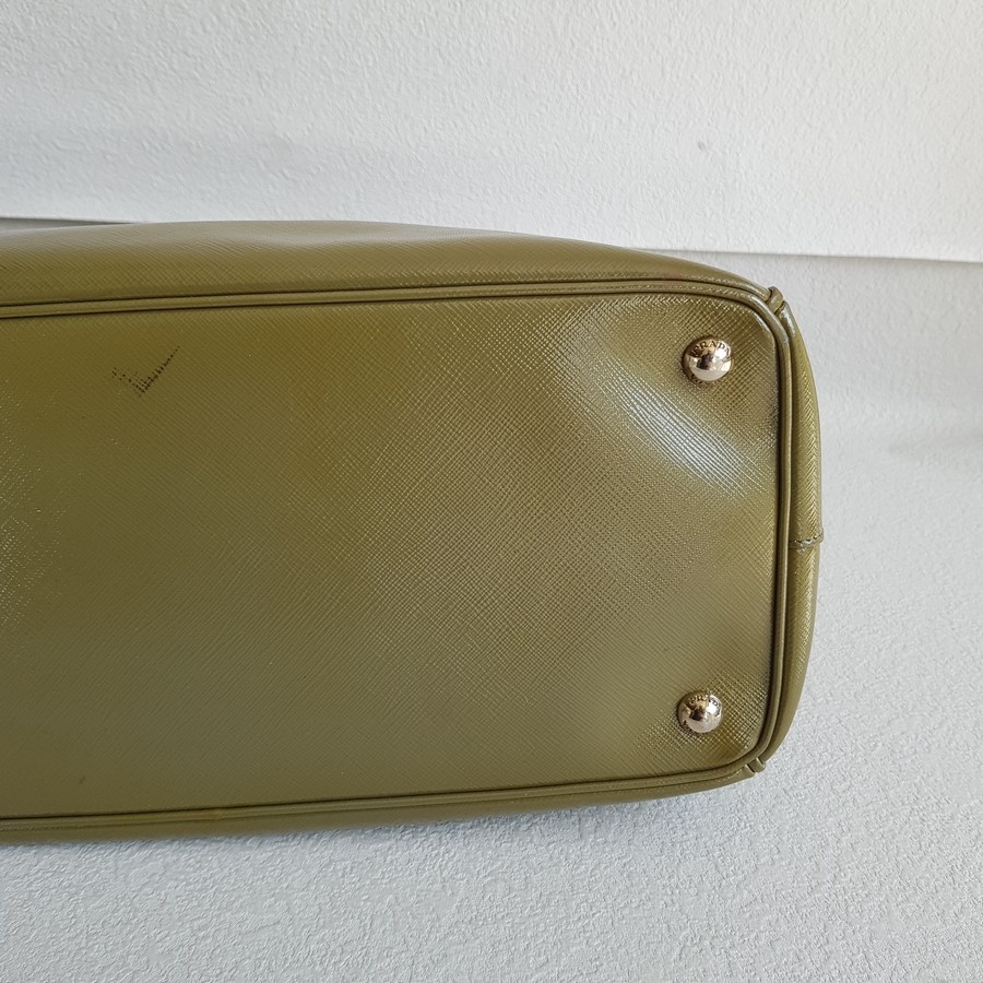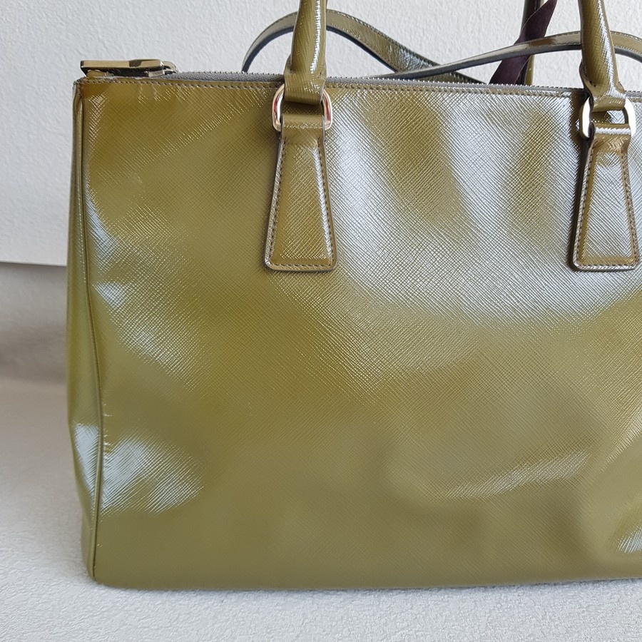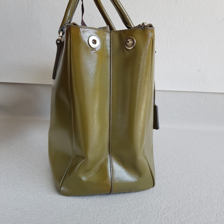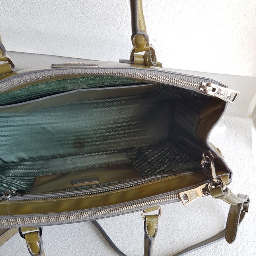 Prada Lux Tote Olive Green Saffiano Vernic Leather with Silver Hardware #RKLY-6
