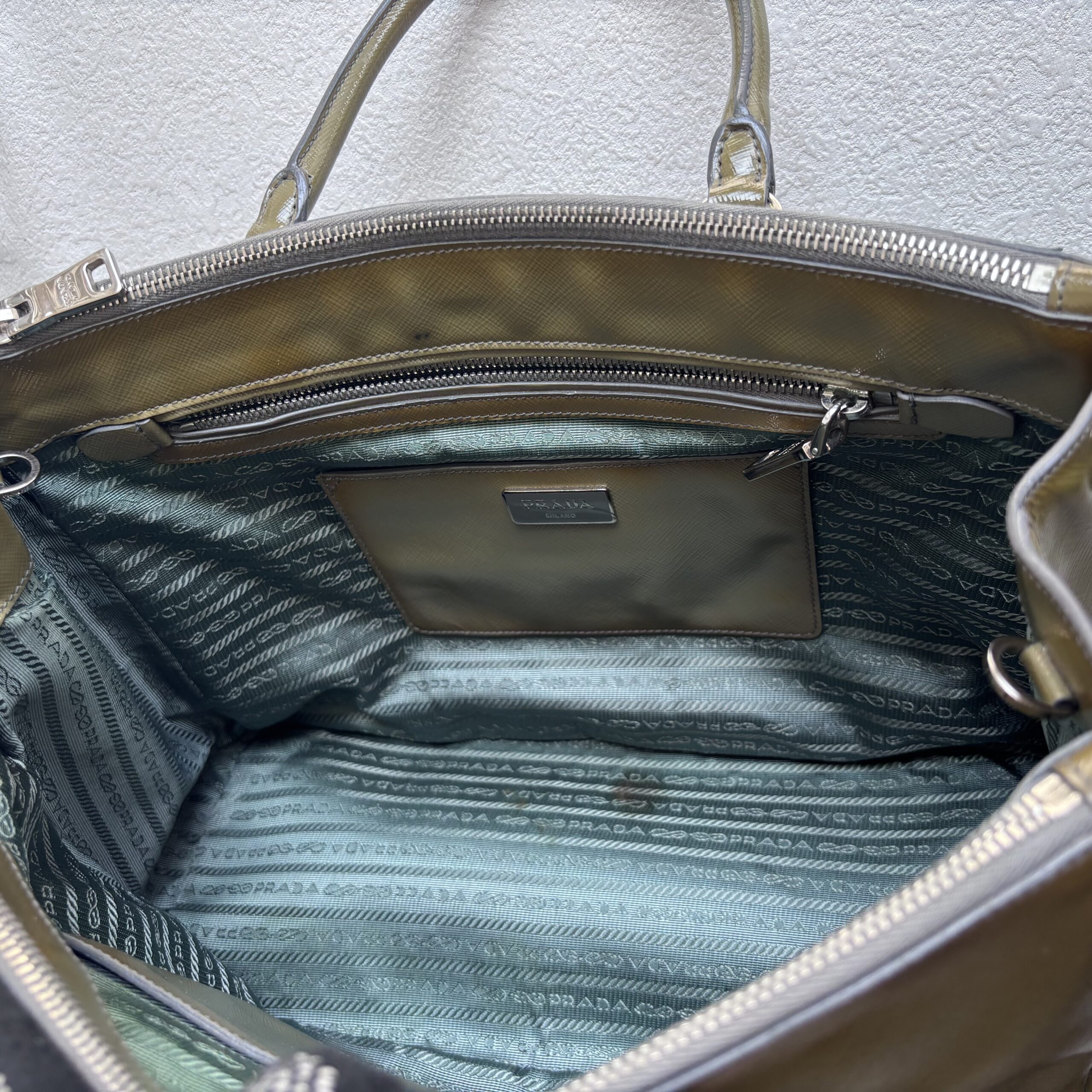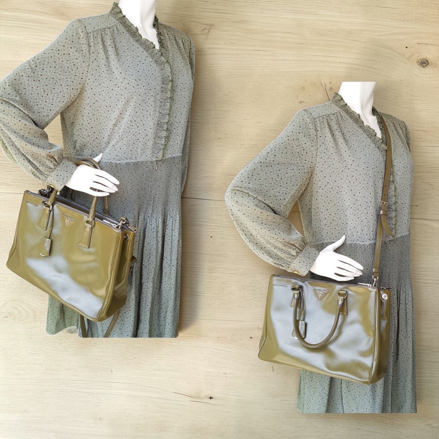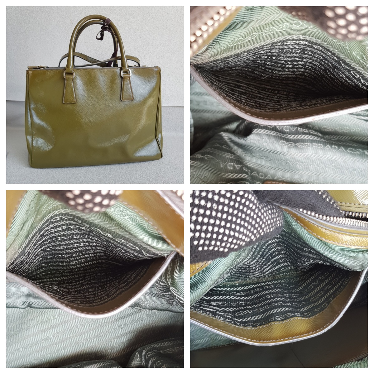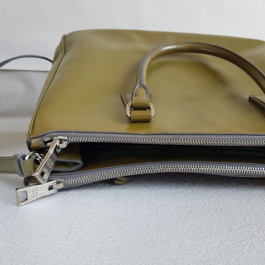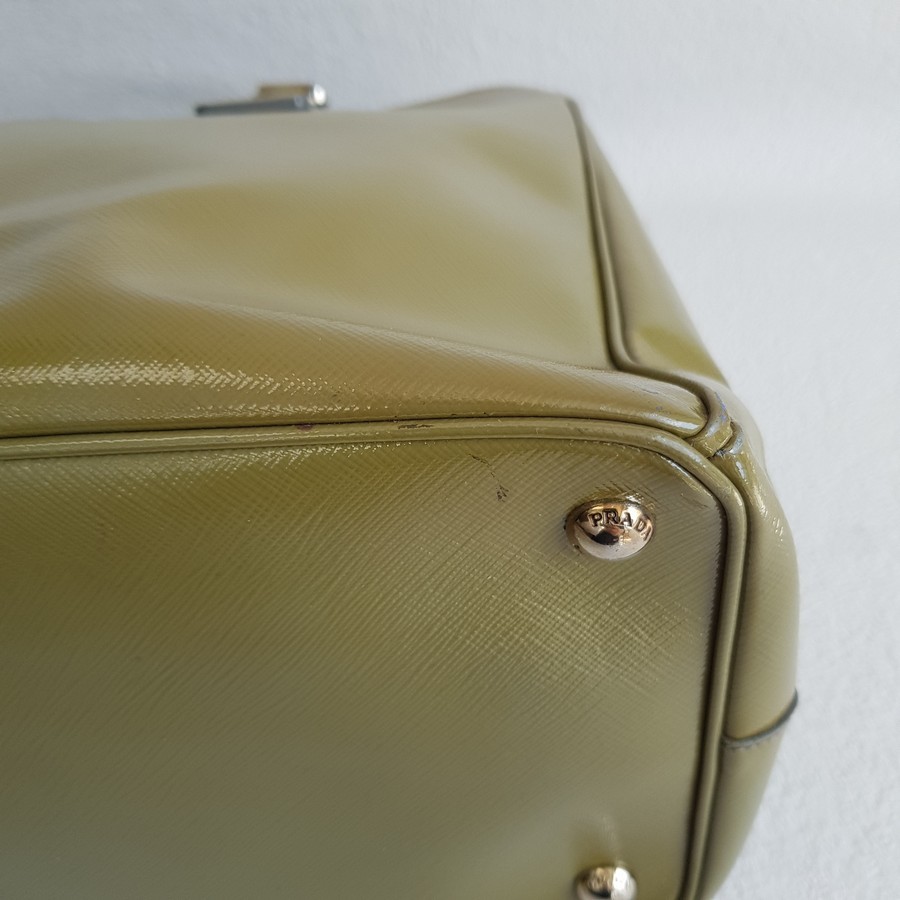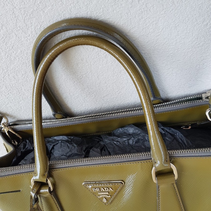 Prada Lux Tote Olive Green Saffiano Vernic Leather with Silver Hardware #RKLY-6