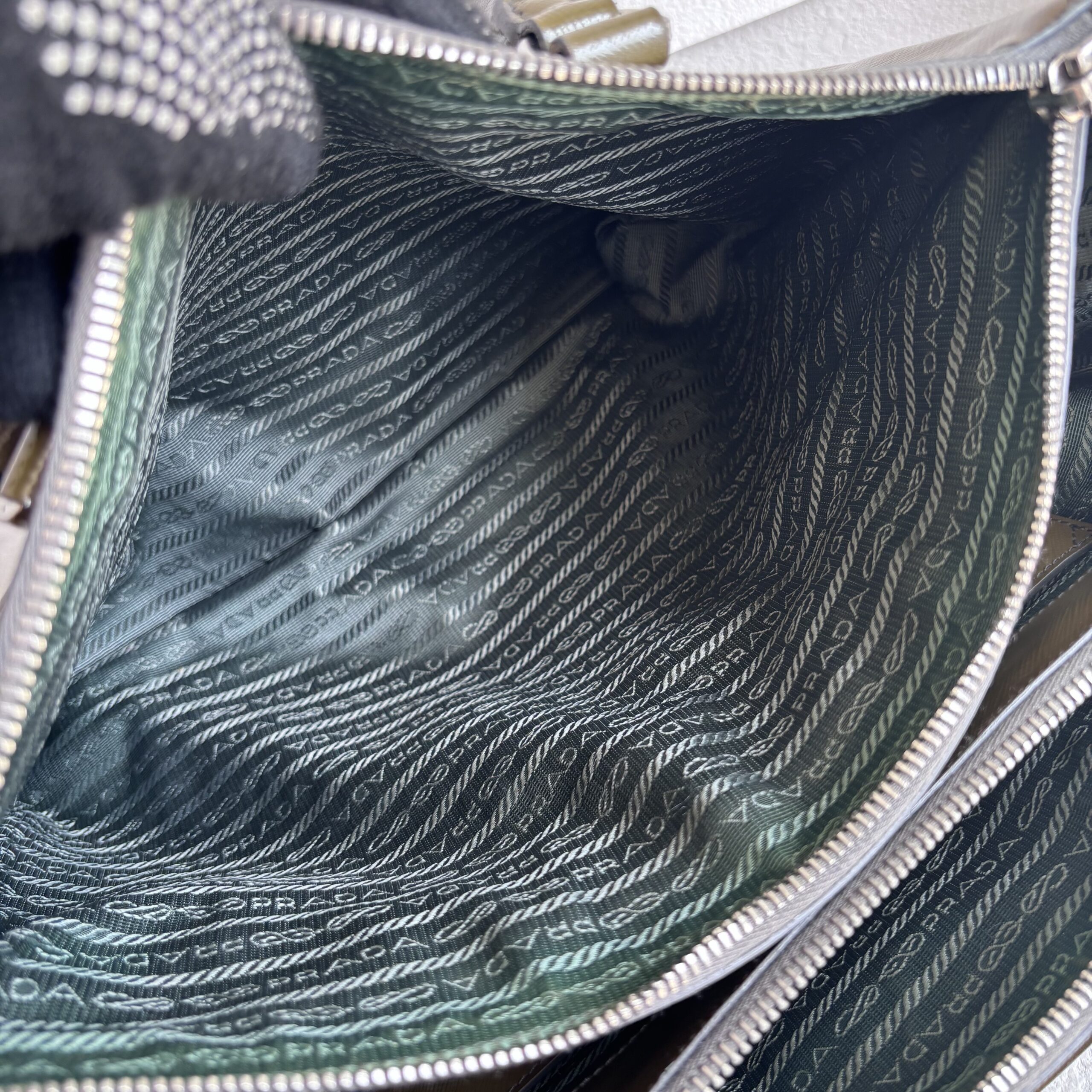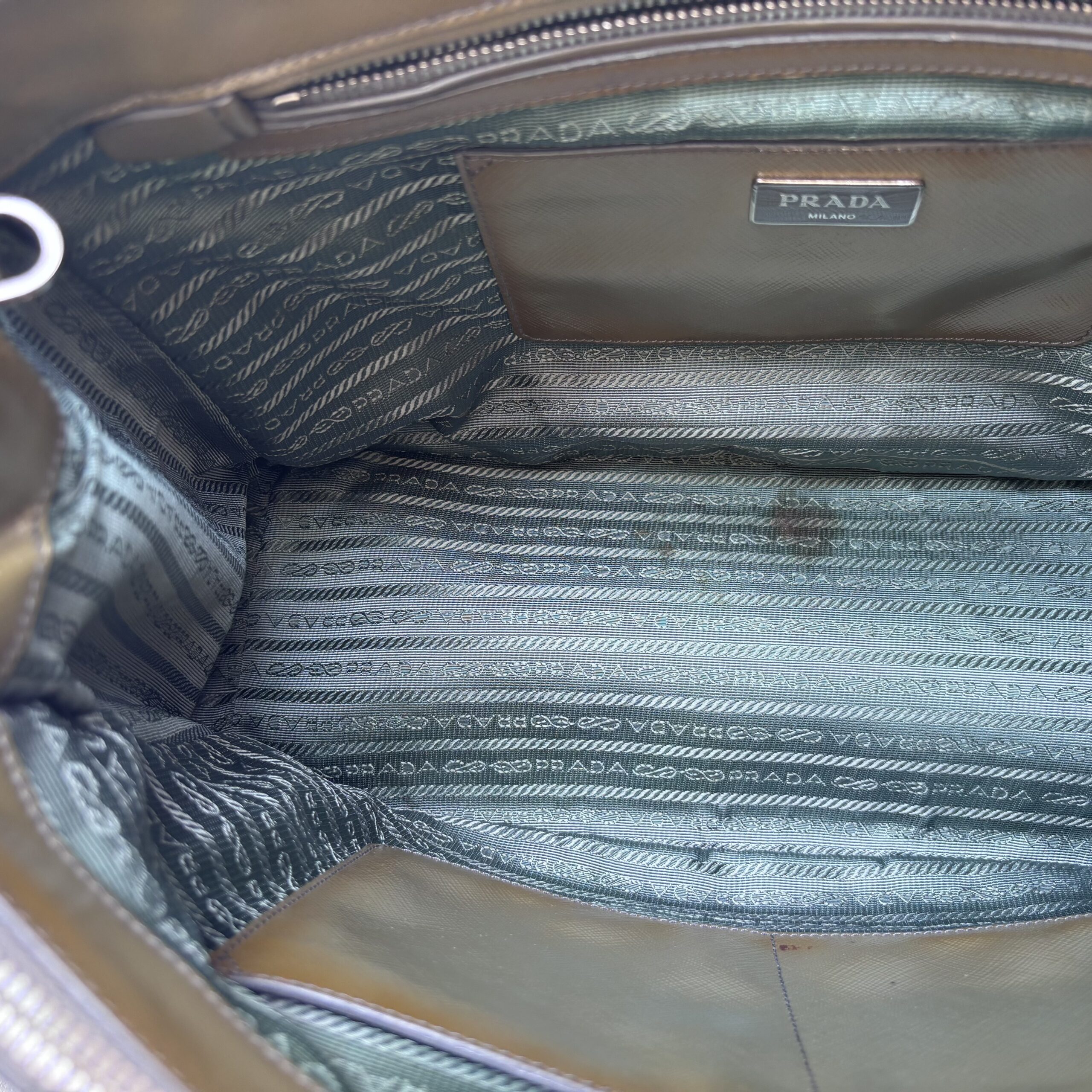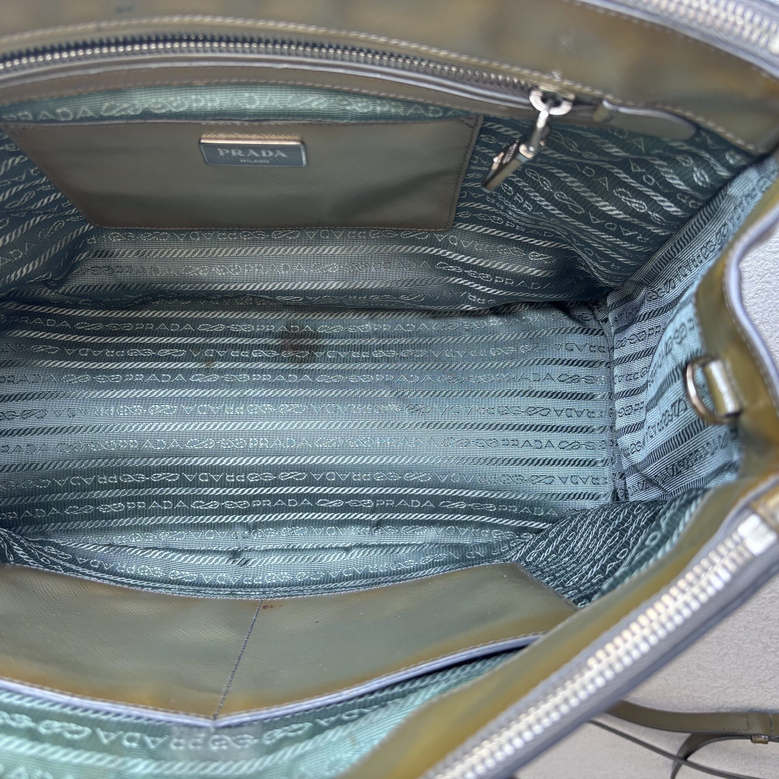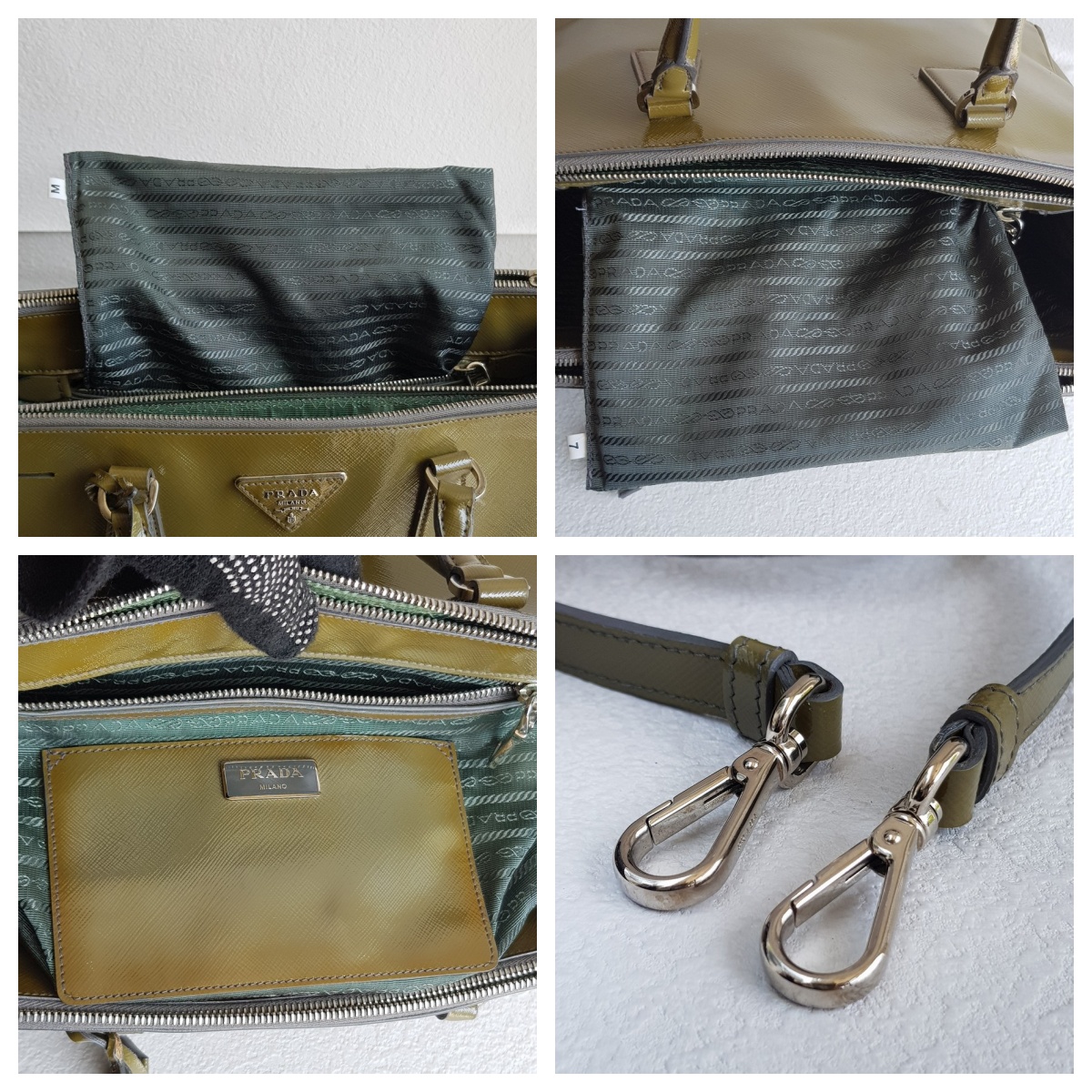 Prada Lux Tote Olive Green Saffiano Vernic Leather with Silver Hardware #RKLY-6