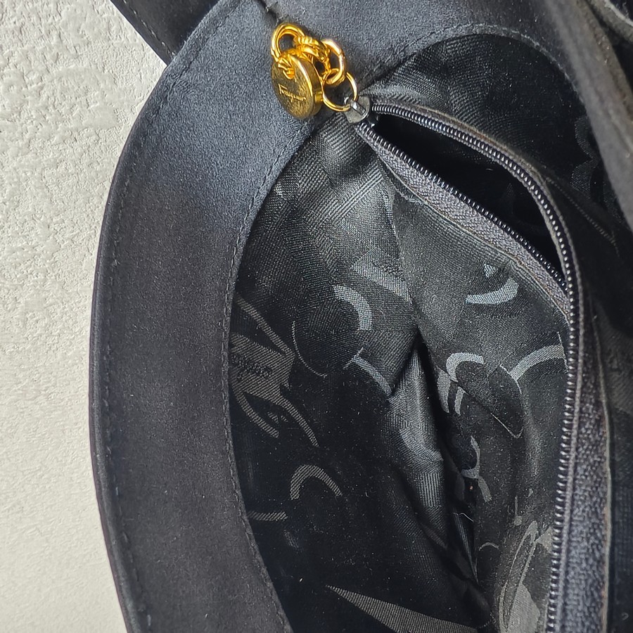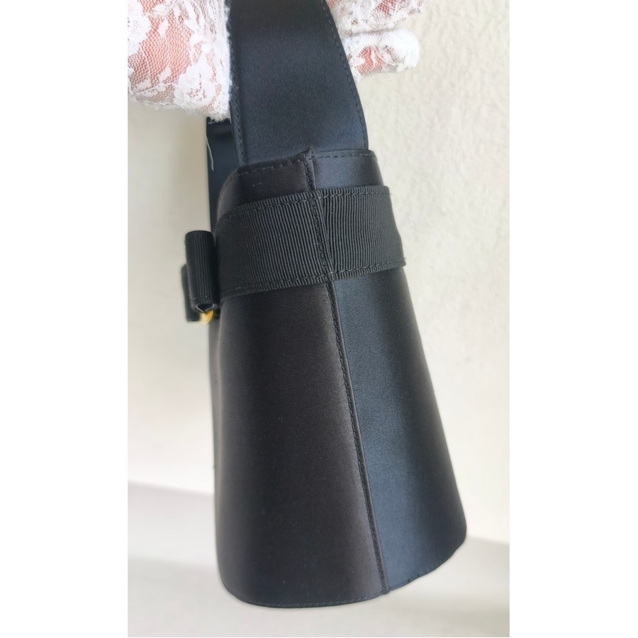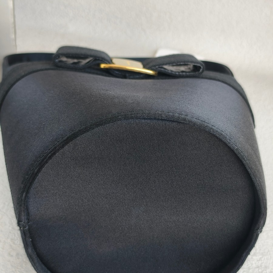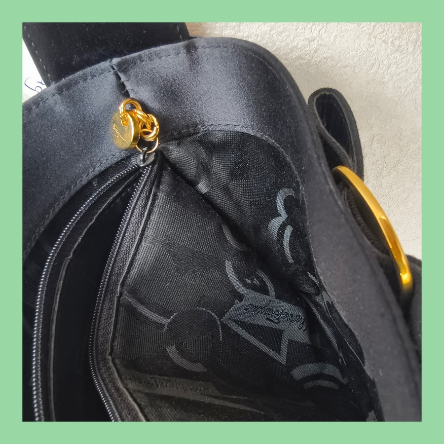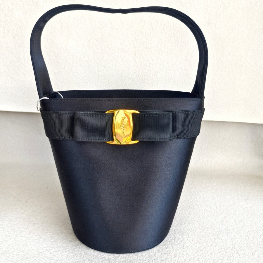 S Ferragamo Vintage Vara Bow Bucket Black Satin with Gold Hardware #ROYR-12
