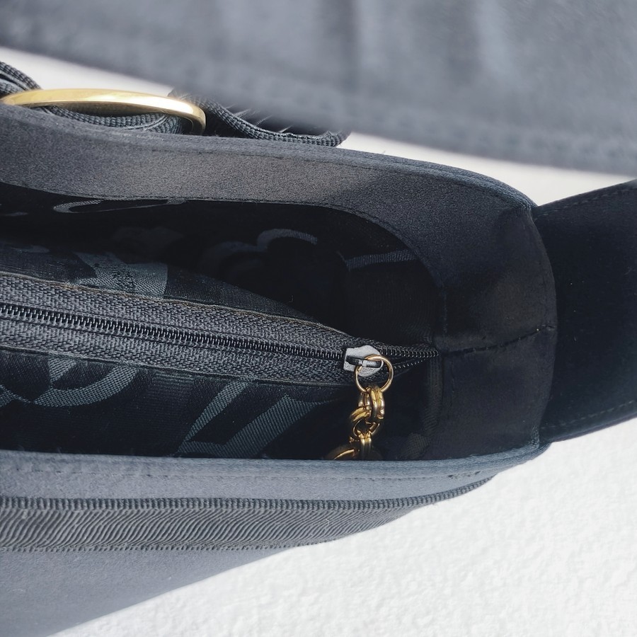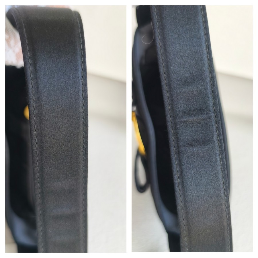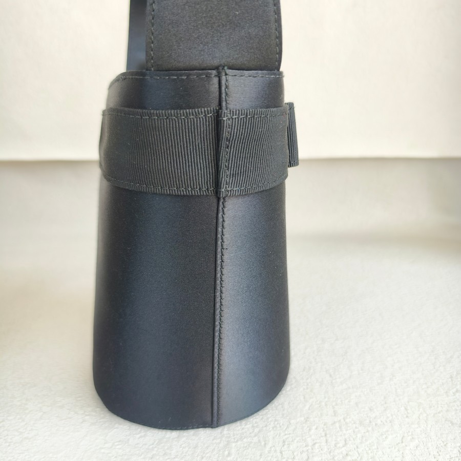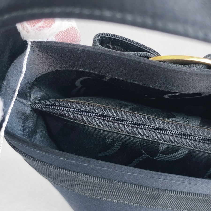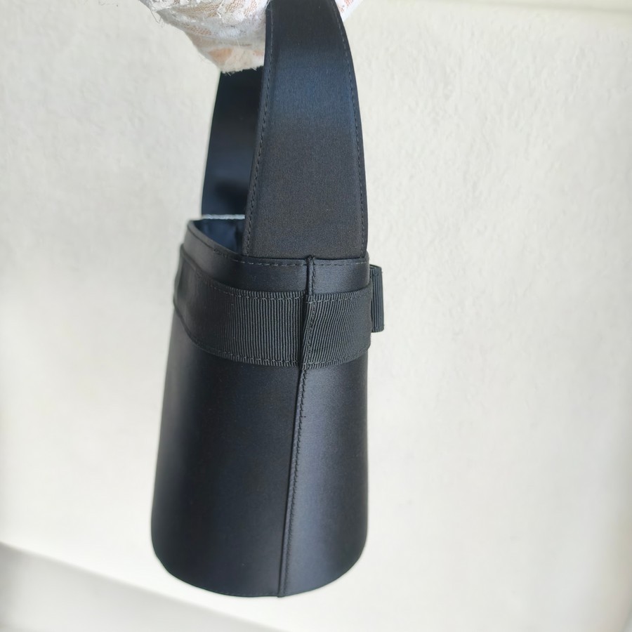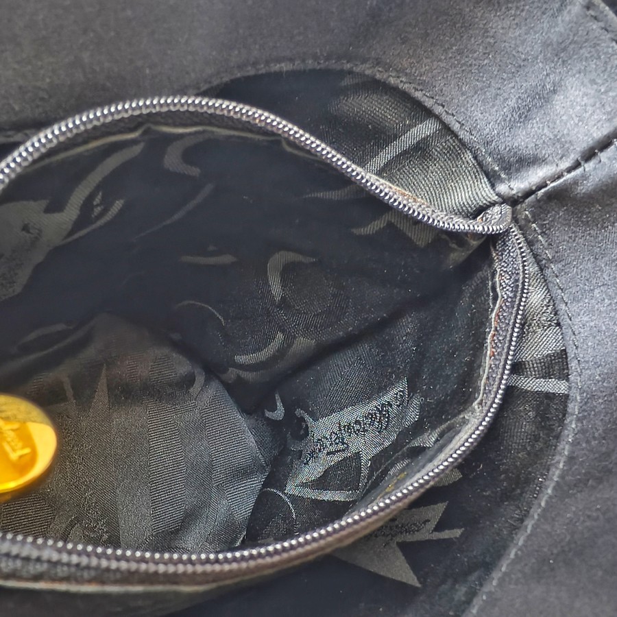 S Ferragamo Vintage Vara Bow Bucket Black Satin with Gold Hardware #ROYR-12