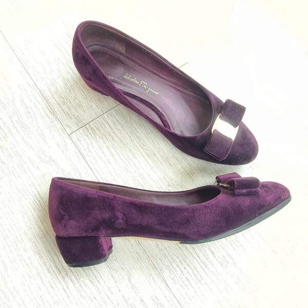 S.Ferragamo Size 7D Pump Purple Suede Leather with Gold Hardware #RKYR-10