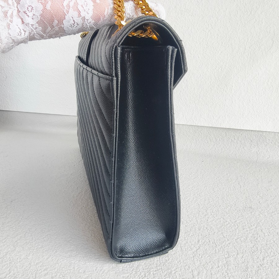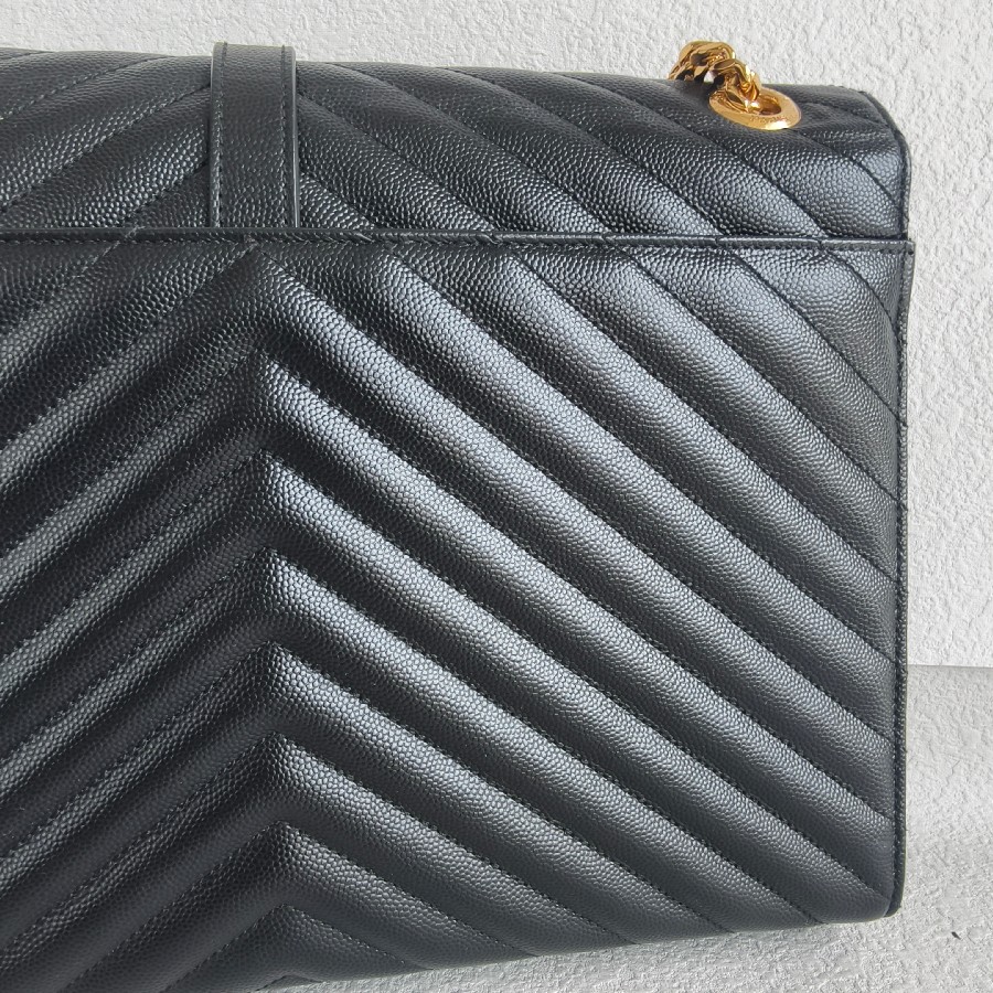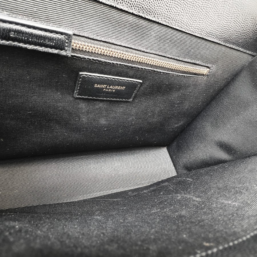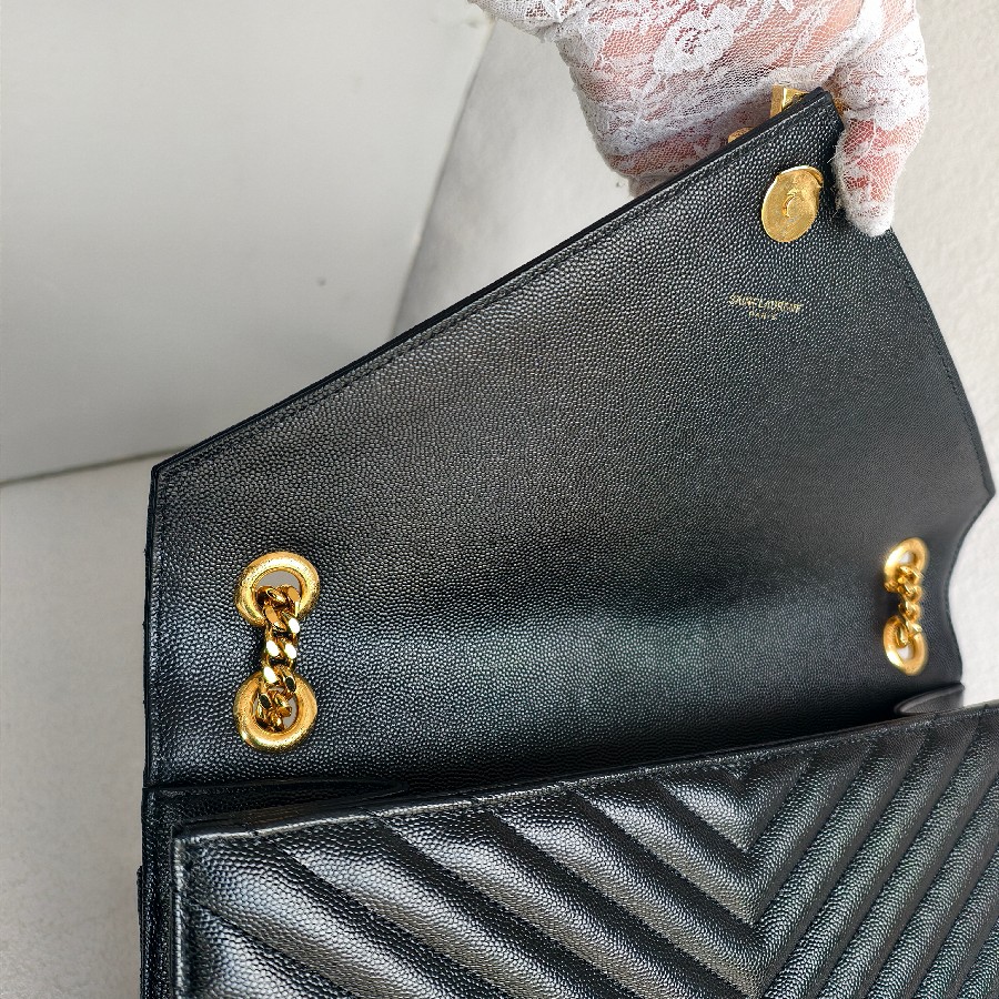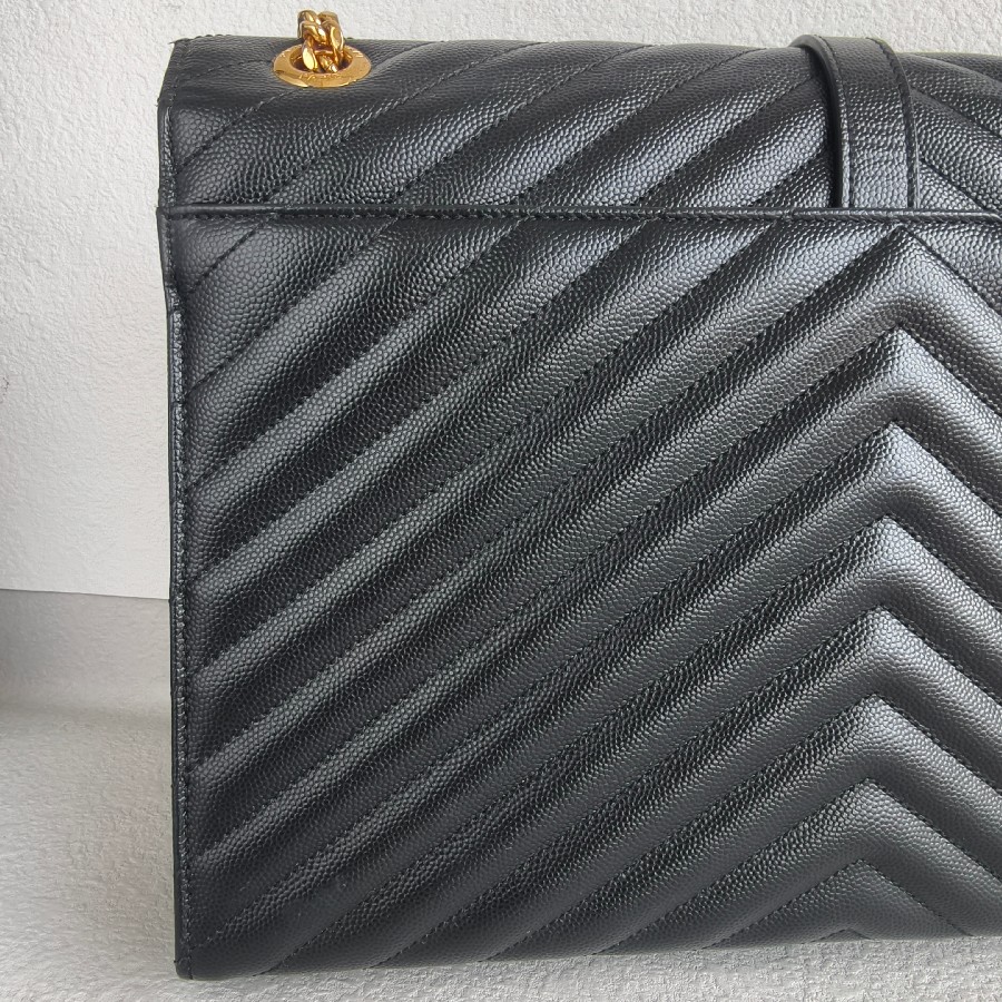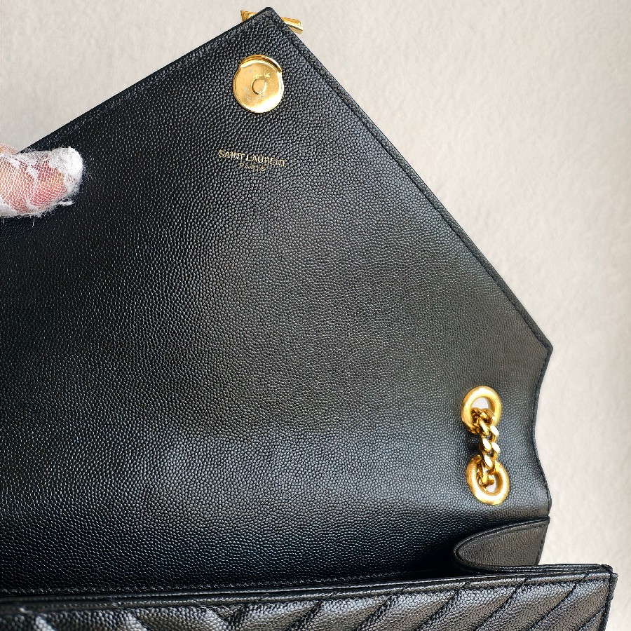 YSL Large Monogram Envelope Bag Black Leather with Gold Hardware #RYSC-1