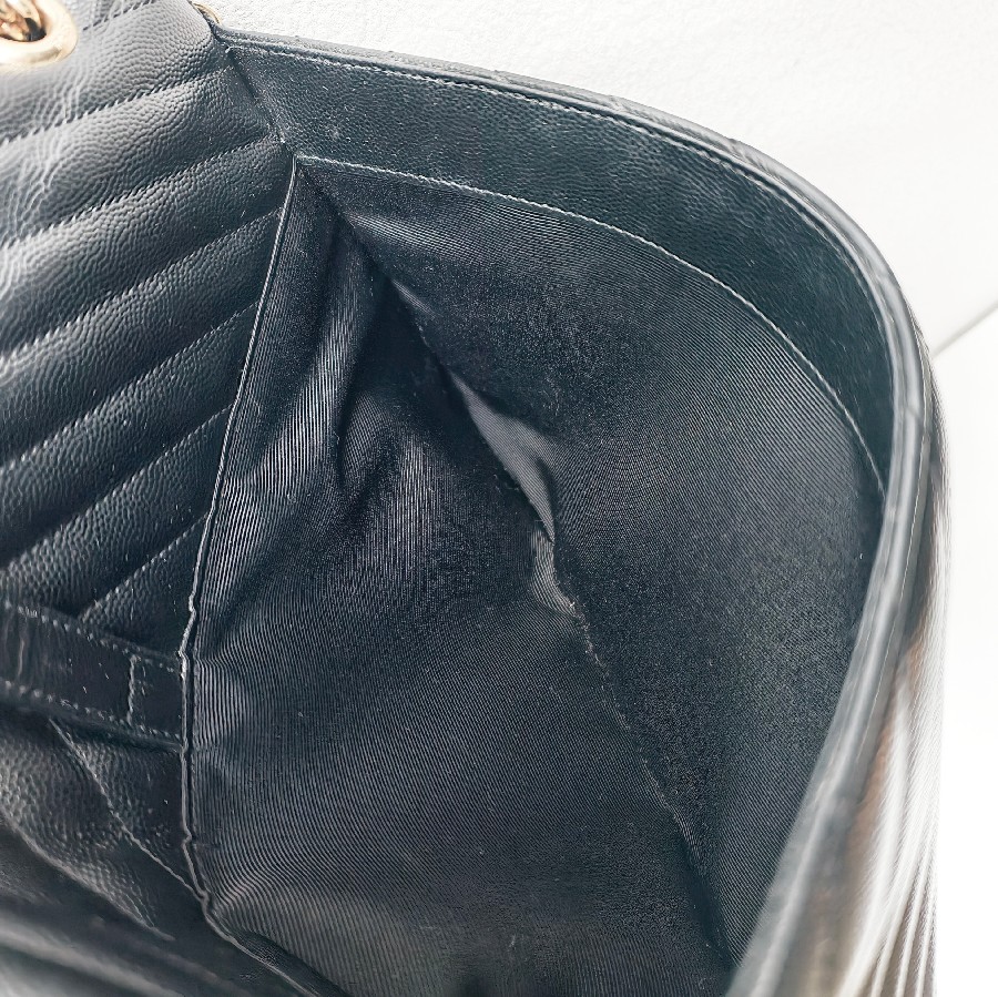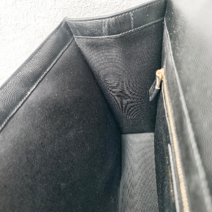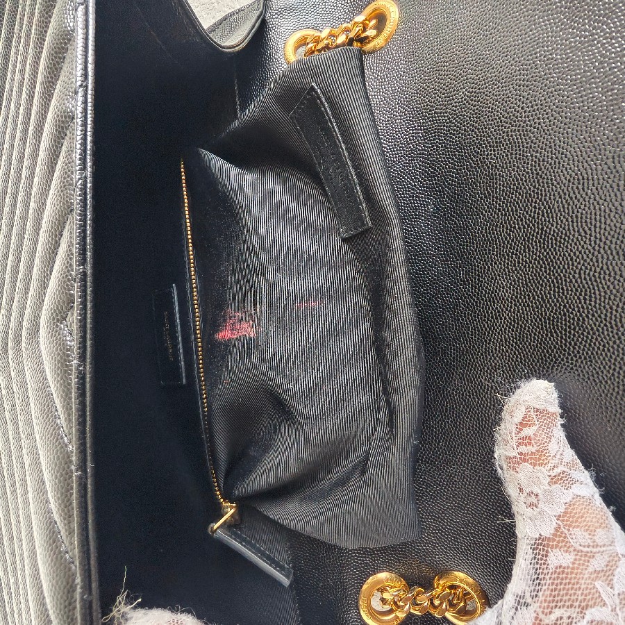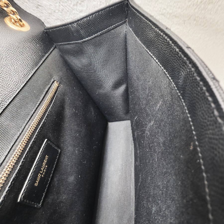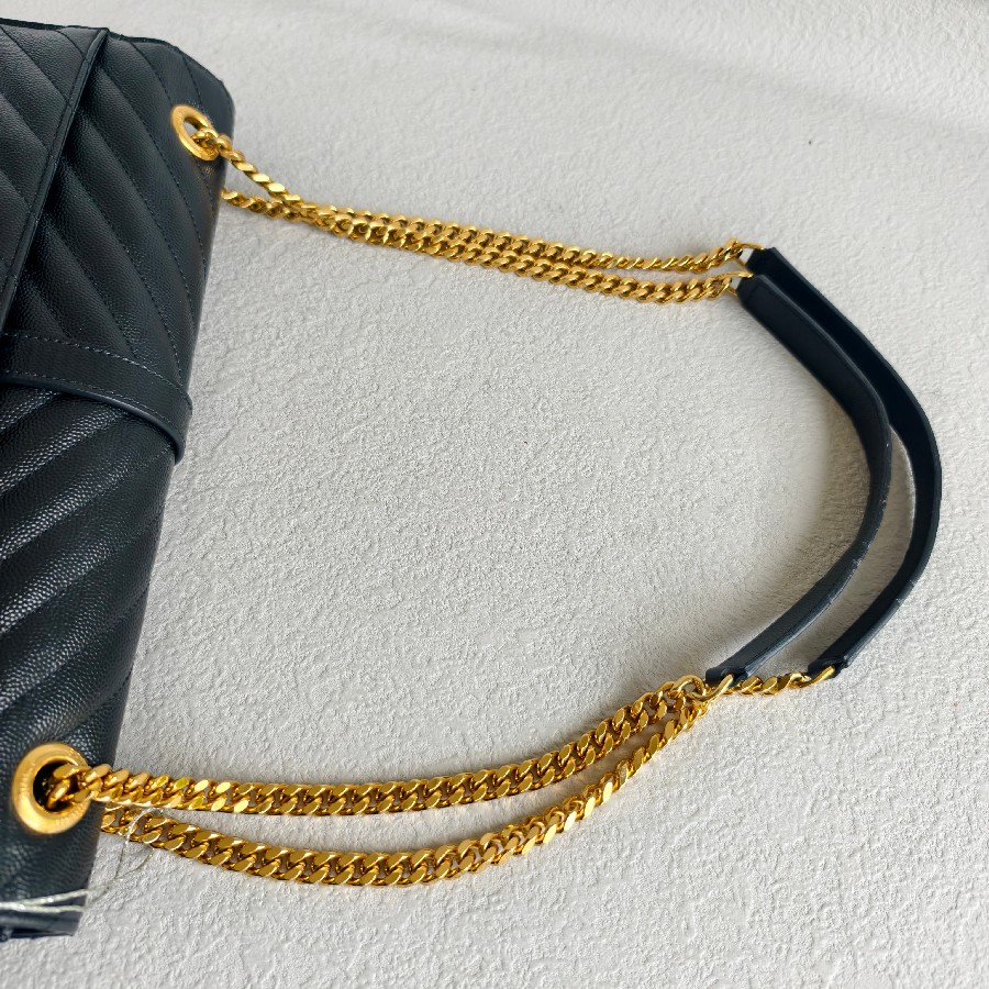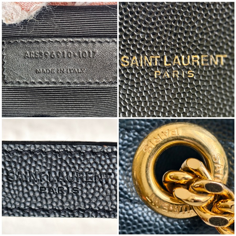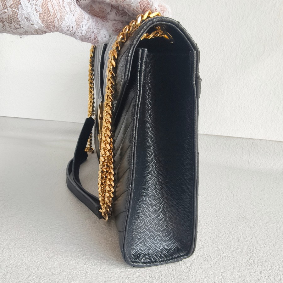 YSL Large Monogram Envelope Bag Black Leather with Gold Hardware #RYSC-1