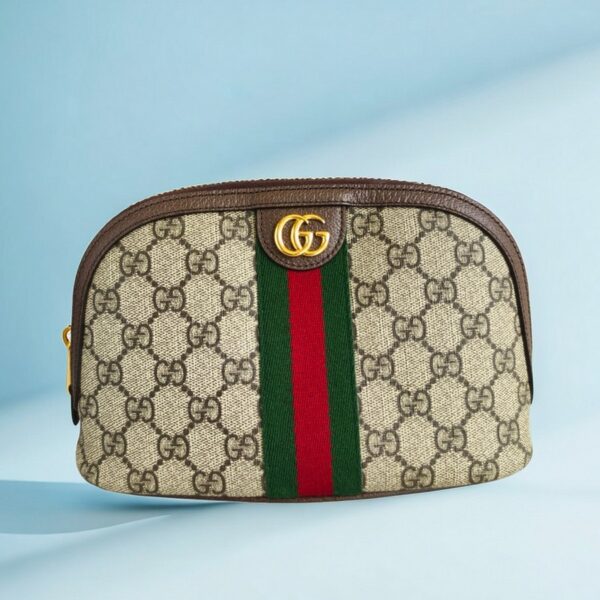 Gucci Ophidia Pouch Brown/Grey Coated Canvas with Leather and Gold Hardware #RUOU-7